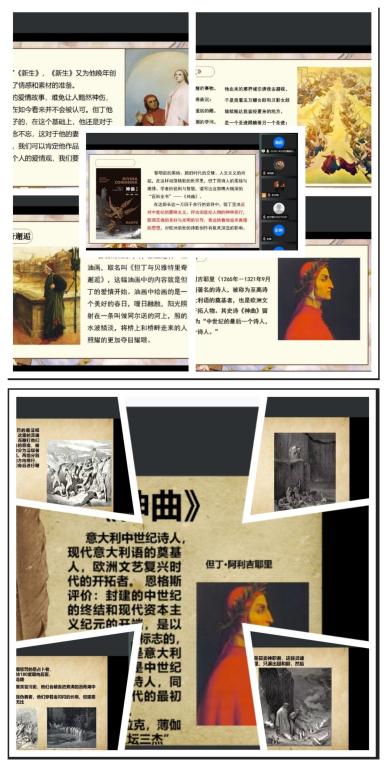 各小组陈述后,单老师借用陈衡哲先生对但丁的评价:“但丁凭着他的文艺的天才,和纯挚的情感,把那块方言的生铁,打成一片柔美的钢;使后来的人见了,不但可以得到他的用处,并且还可以学着一点制钢的方法。”以此强调但丁《神曲》的重要性,不仅在于其文本对中世纪黑暗的揭示或对秩序的维持,同时也不可忽视其在方言和民族国家逐步形成中的深远意义。黄老师从课程思政的角度引发学生思考,《神曲》作为不朽的诗篇,永不过时,给人以深刻的现实意义,借邓佳天小组陈述的内容,结合现实生活事例提醒同学们增强防范意识,防范诈骗。
