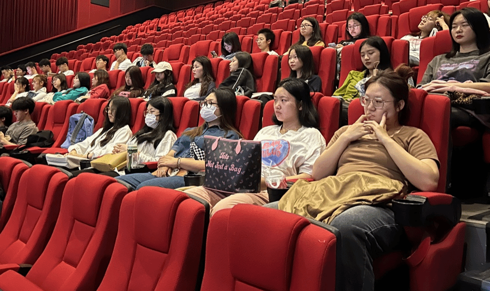 电影评论中心一直以来致力于为学生带来高质量的电影通识课程,在教学内容上不断打磨,在教学形式上不断创新。自2022年3月以来,电影评论中心正式开启双师授课模式,在学生中取得了良好反馈。本学期开始,为进一步创新教学模式,充分利用学校影厅资源,带给学生新鲜的课堂教学体验,电影评论中心开启万画影城X超幕厅巨幕授课模式,带领学生走出教室,走进影厅,在沉浸式的巨幕厅空间中,进一步感受电影的魅力,丰富学生的电影通识课堂体验。
