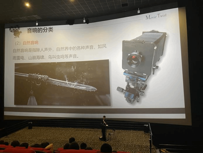 万画影院作为移通学子日常放松娱乐的场地,给同学们带来最新大片和经典影片的观影机会,但在电影院内上课却是难得的体验。在本次课堂上,何老师结合了经典电影片段为同学们讲解电影视听语言中“声音”的部分:《闪灵》中特殊的人工合成音响起到渲染画面的环境气氛,产生令人恐惧的戏剧性的效果。《天才枪手》中利用音响的效果刻画角色作弊时候细微的动作,反映了人物紧张的情绪。《喜剧之王》、《健听女孩》运用声画对位的方式,将声音和画面有机地联合起来。超大屏幕和绝佳的音响设备,给同学们带来更好的视听享受,同学们的注意力更为专心,学习热情高。课程的最后何老师也与同学们一起讨论电影《汉江怪物》中几段声音的运用效果,同学们积极回答,参与的讨论的热情高涨,形成良好的课堂氛围。