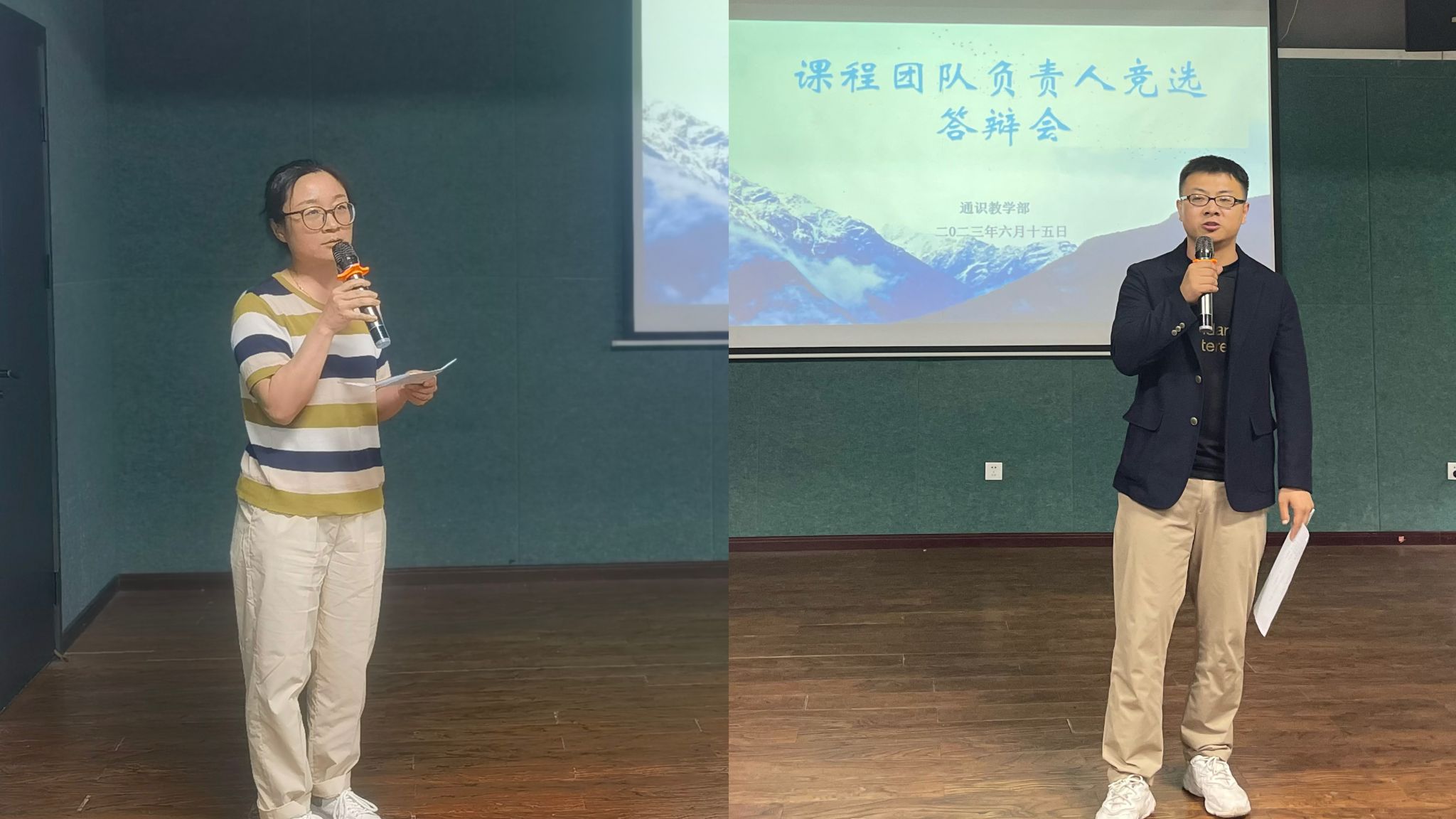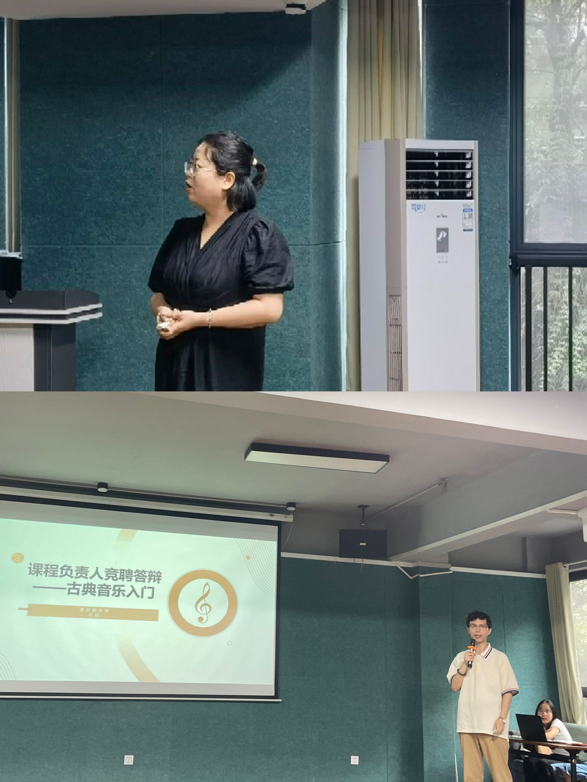 历史与艺术教研室参加课程团队负责人竞选答辩的有邓露露、石权两位老师。邓露露老师全面、清晰地梳理了《欧洲文明的现代历程》课程建设的历程,并对后期工作作出详细的规划。石权老师的《古典音乐入门》已经成为我校学生疯抢的一门通识选修课程,石权老师的课堂节选也被各大官媒转载报道,石老师在过程考核、课程实践方面推陈出新,对课程建设的思路得到了评委老师们的一致赞赏。皮若兰老师建议音乐课程结合完满教育跨部门拓展课程实践,彭可老师希望把音乐课程融合在《经典电影赏析》课程里,发挥音乐和电影老师的专业优势,给学生来一场视觉和听觉的绝佳双师授课盛宴。