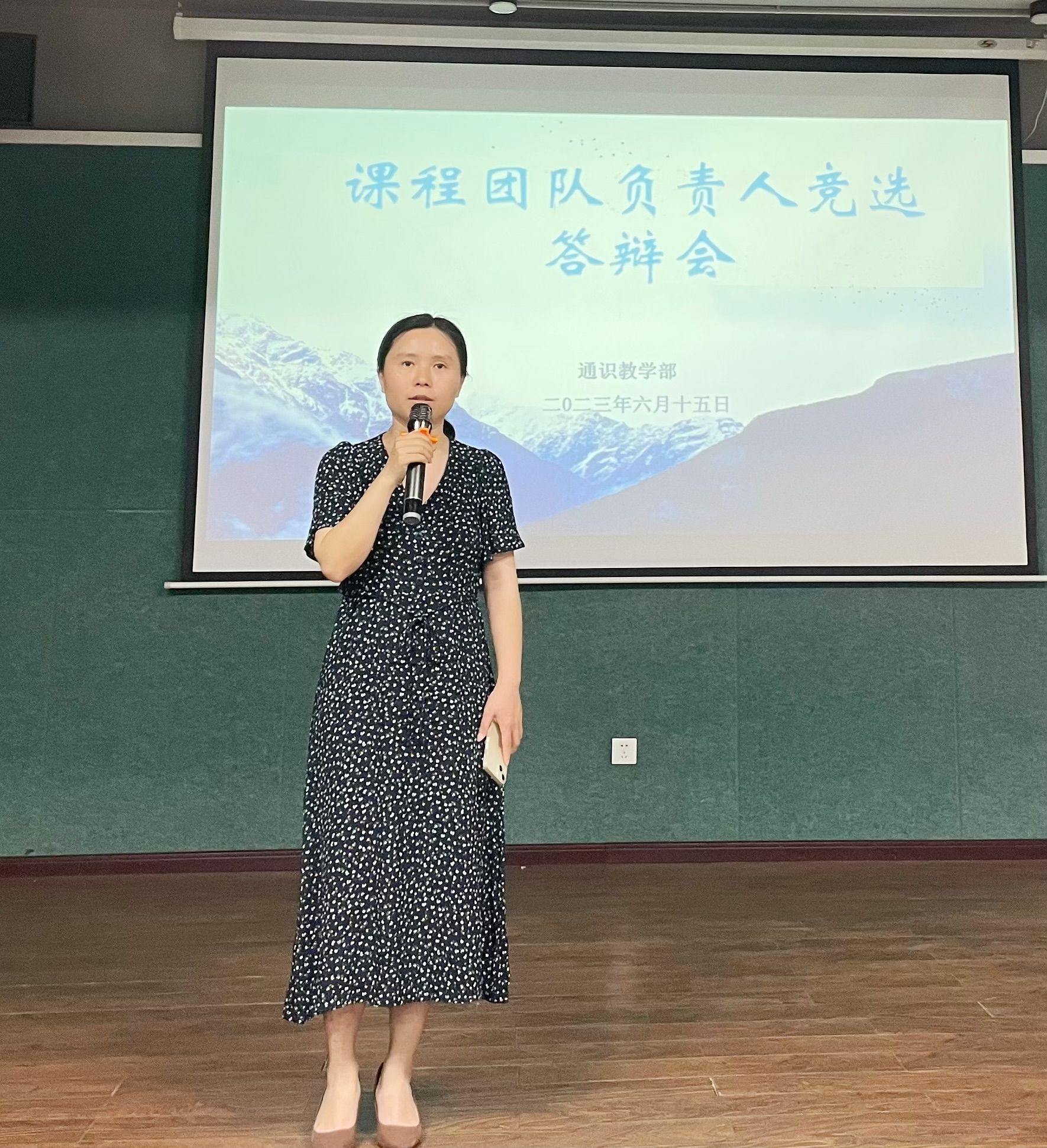 参加课程团队负责人答辩的老师按照抽签顺序,依次上台进行演讲。他们根据本次竞选的课程,结合过去的工作成果和未来的课程建设规划,以饱满的热情分析竞选优势、畅谈工作思路,以朴实真挚的话语表达着对通识教育事业的热爱和坚守。虽然只有短短7分钟的个人陈述加3分钟左右的交流答辩,但参加竞选的老师们思路清晰,课程建设的亮点与特色十分突出,充分展现了通识老师们的教学特长和师德魅力,赢得了台下评委和观众老师们的阵阵掌声。