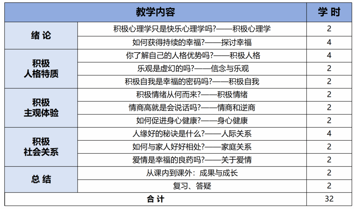 在申报过程中,团队有幸获得集团三校四区的鼎力支持,依托多方互动交流以及专家的悉心指导,深入挖掘《幸福课》在教学设计、教学资源、组织实施、成绩评定等方面的优势和特色。课程以积极心理学模块教学为基础,结合互动体验与实践活动,缩小了理论与实践的差距,提升了课内外幸福感。同时,注重培养学生社会责任感与使命感,实现了课程思政的深度融合,为学生步入职场、参与社会建设提供了坚实的基础。