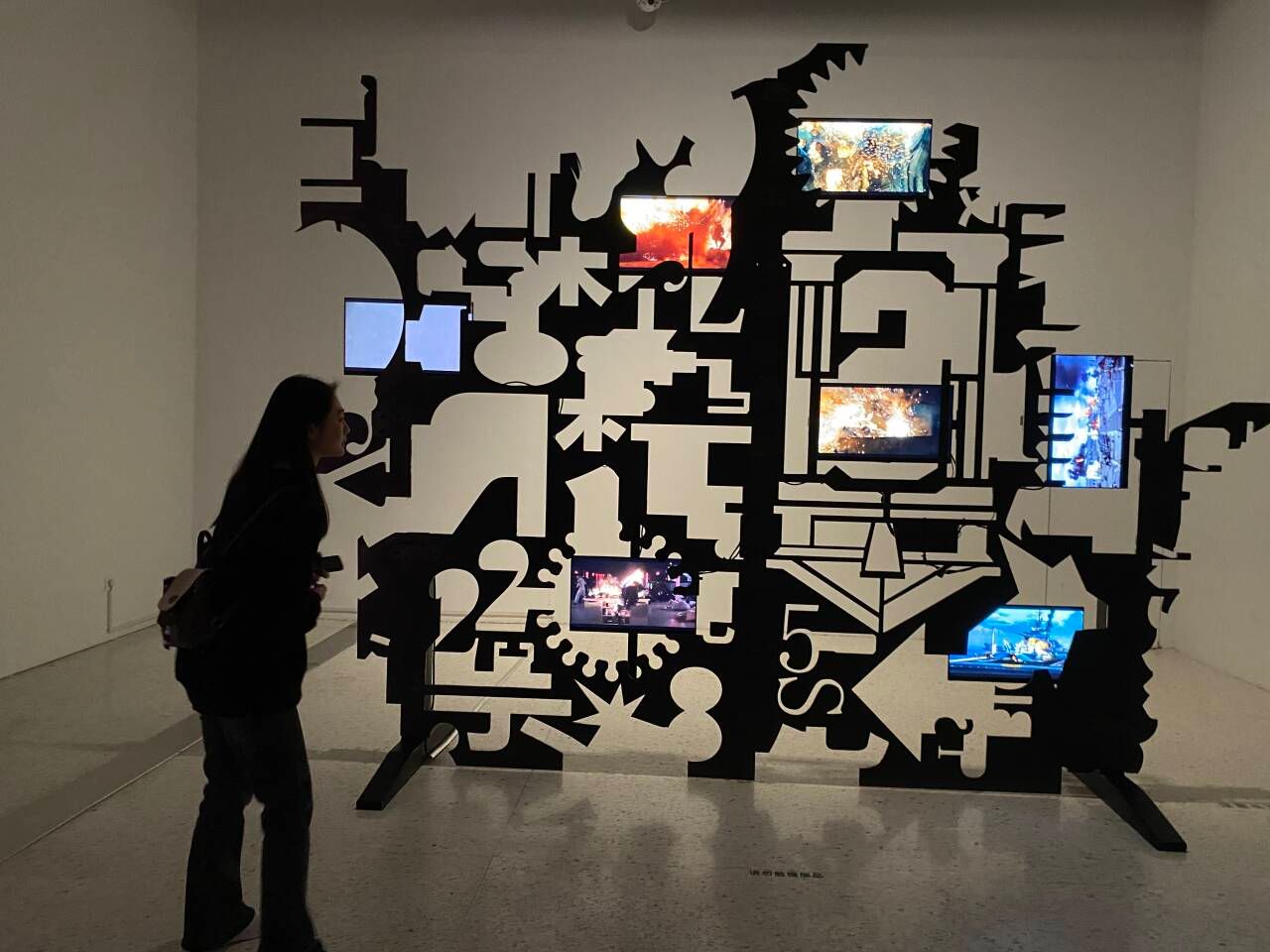 展览的最后,艺术家张振的《现象级:跨未来遗迹叙事的异质剧场》则以其深刻的思辨和预判,对未来人类的生存状态、科技存在状态和社会生长形态进行了系统的探讨。他的作品有如未来剧场般,展现一种被信息与科技时代洗礼而又落寞后的场景,不仅提示了信息社会和数字时代对当代人的禁锢与控制,也警示我们也许所有的场域都将被科技与信息所占据。这带给了同学们不小的冲击,一方面科技给我们的生活带来了巨大的好处,但另一方面却又可能加速人类的异化,这不禁让同学们开始思考应当如何避免这样一种可能的命运,这一刻同学们也真实地感受到哲学不仅仅是纸上空谈,正如课堂上老师所讲,哲学的关怀在于每一个人的生命。