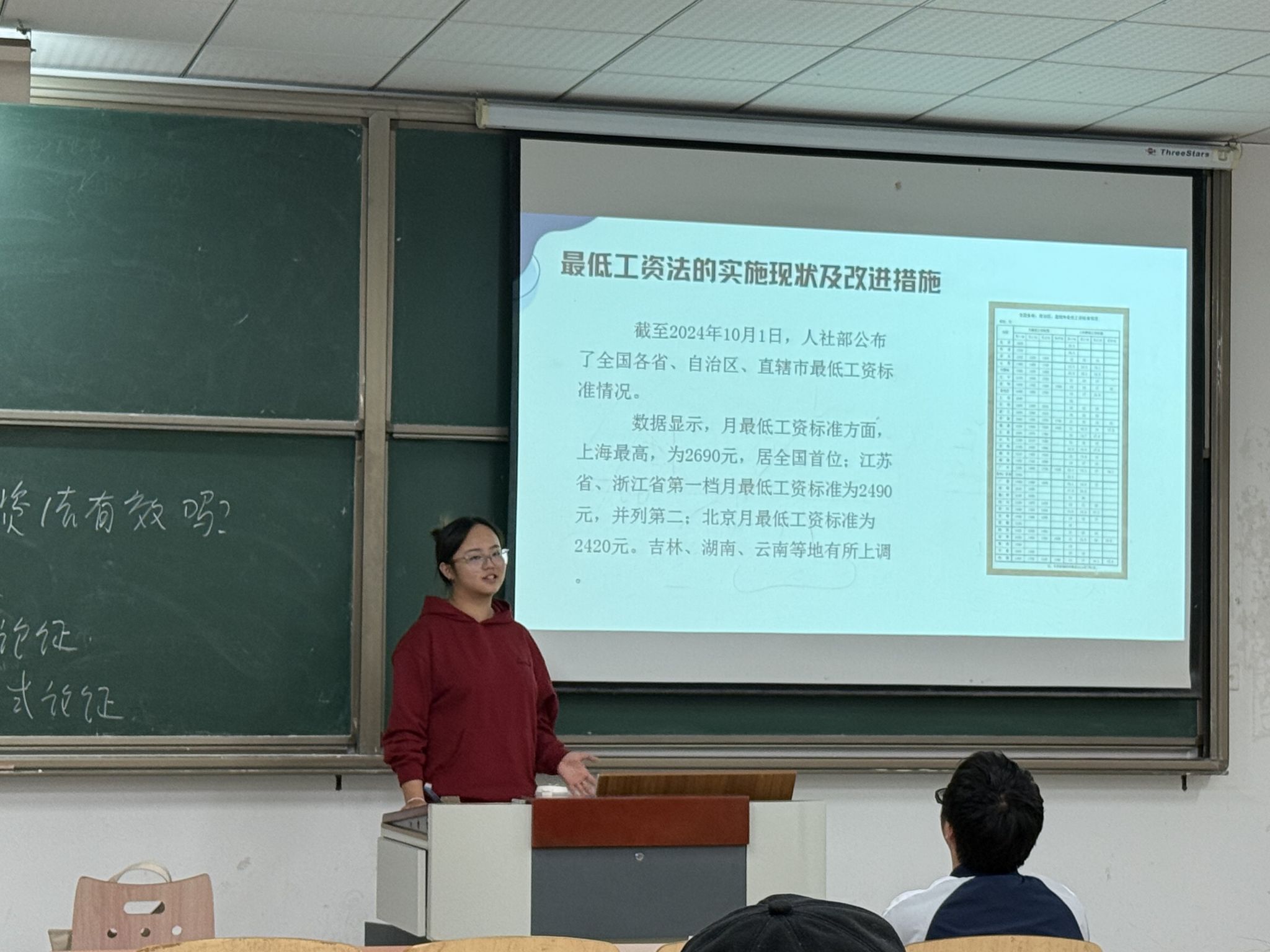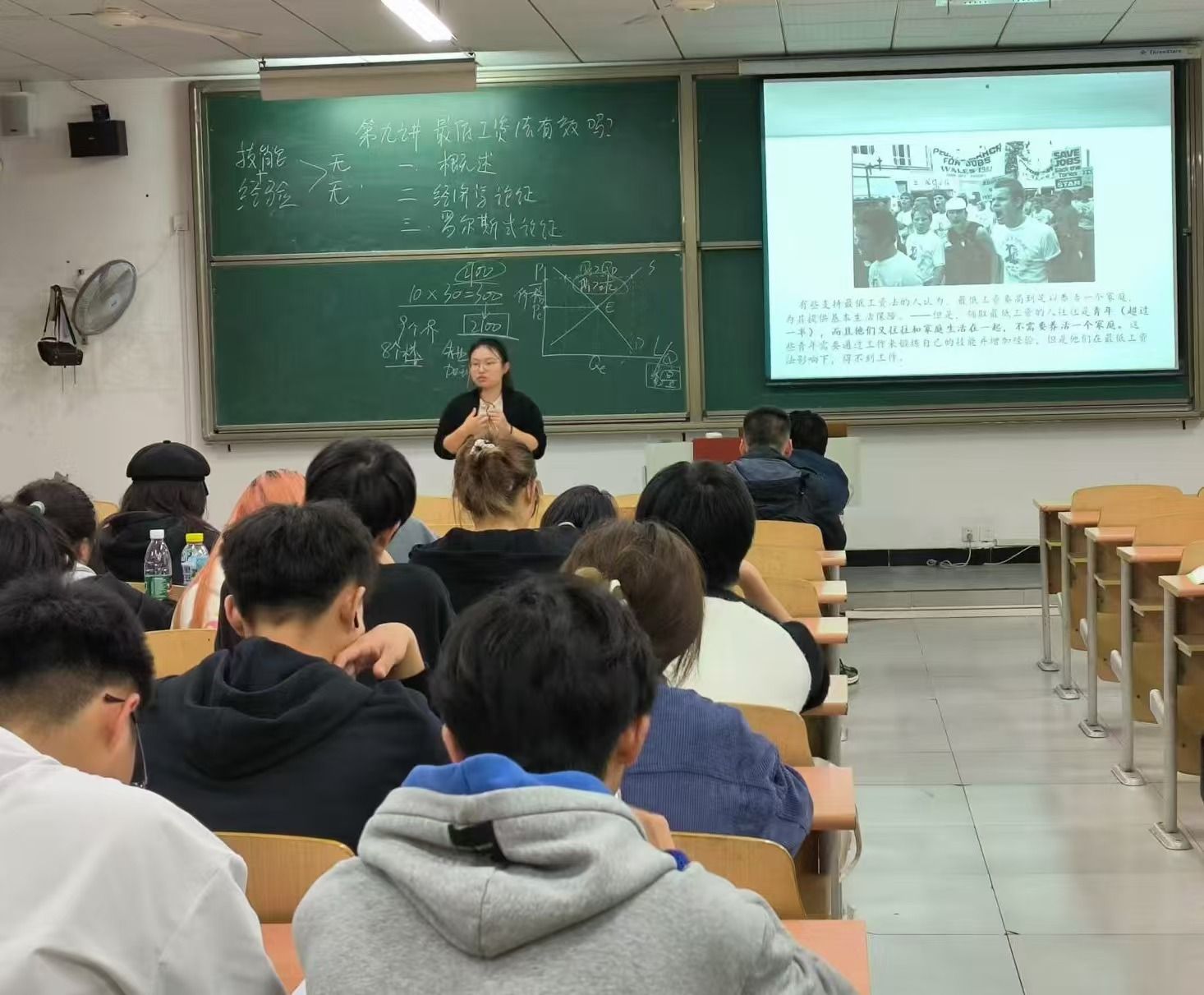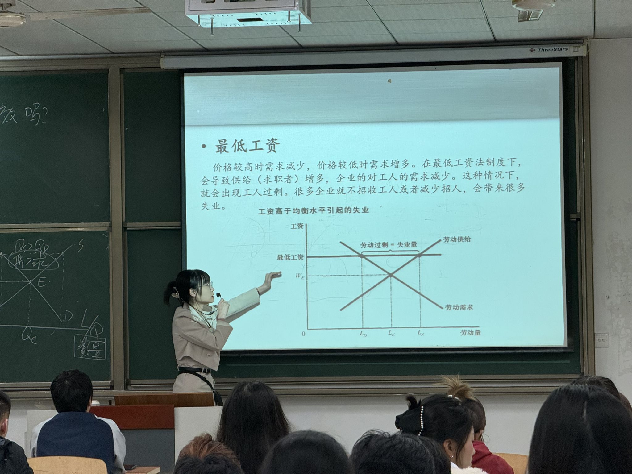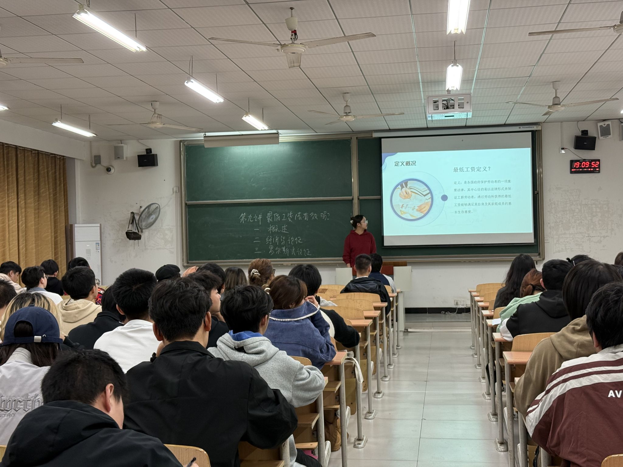 在探讨最低工资法的有效性这一复杂议题时,单一学科的视角往往难以提供全面的解答。为了深度培养学生的独立思考能力、批判性思维能力与跨学科认知能力,11月14日晚,通识教学部教师唐钦钦与金融学专业背景的徐逸楠教师在《正义论》课堂上联合开展了一次主题为“最低工资法有效吗?”的跨学科教学活动。