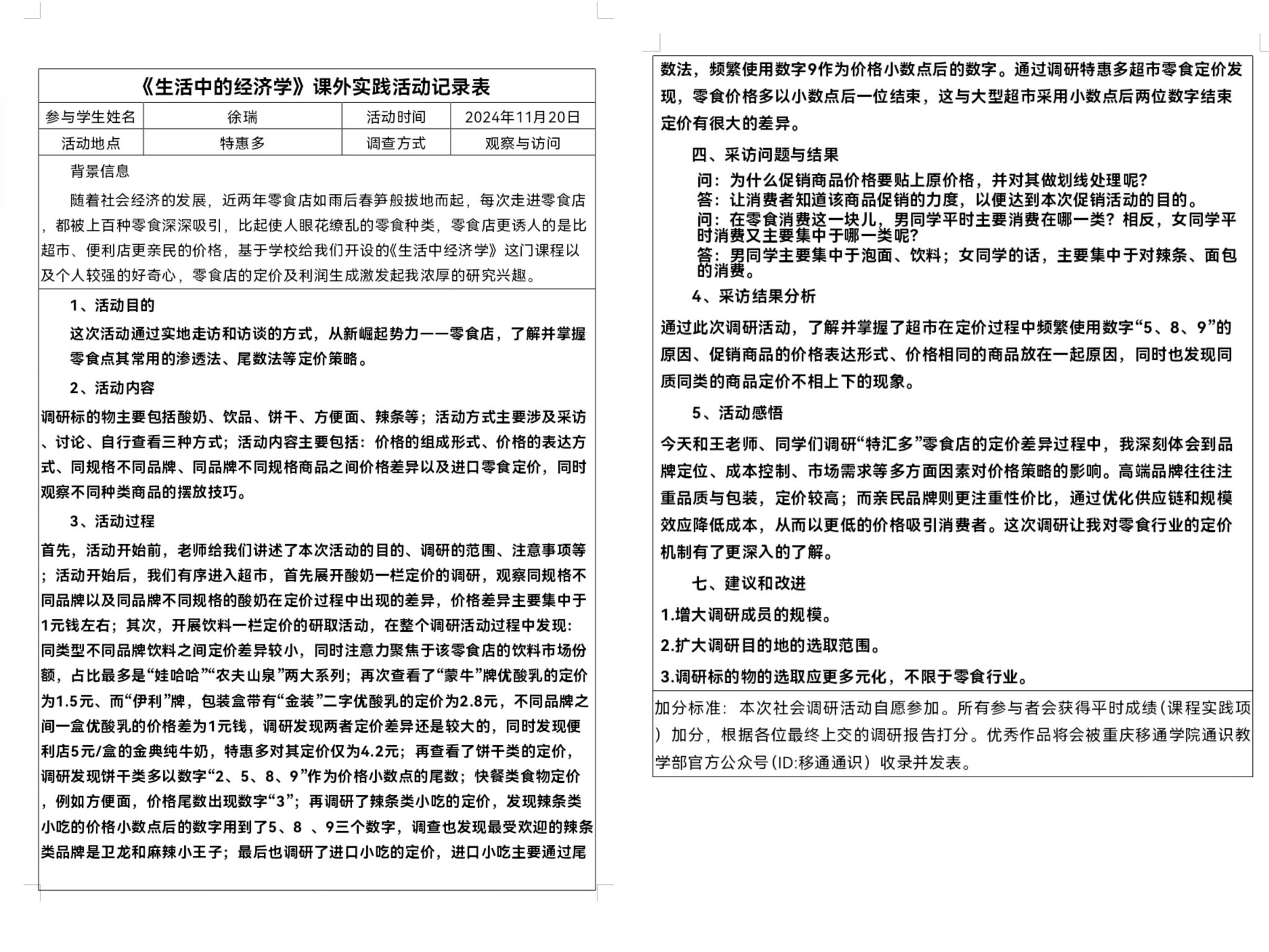 调研活动正式开始后,商贸实践小组的成员们带着笔记本、相机和满腔的热情,走进了校园周边的零食店铺。他们逐一记录下每种零食的价格,并拍摄了商品图片以便后续比对和分析。在调研过程中,他们还特别注意了店铺的促销活动、会员优惠以及价格变动等情况,确保数据的准确性和全面性。