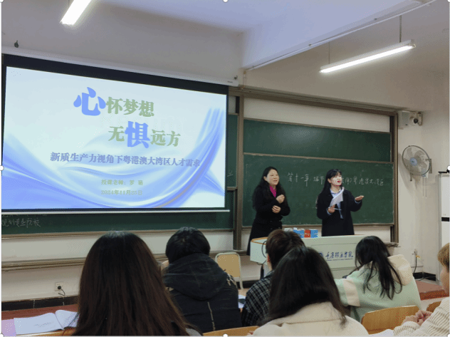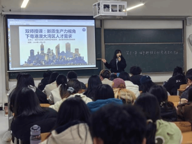 11月25日晚,通识教学部《中国近代经济地理》课程主讲教师单旭燕老师与通信工程学院《电信工程项目管理》课程主讲教师罗菊老师,联合开展了一堂主题为“新质生产力视角下的粤港澳大湾区人才需求”的双师授课。此次双师授课围绕粤港澳大湾区的国际局势适应性、发展现状、未来产业发展以及学生专业定位下的产业需求和人才匹配等角度,旨在通过结合学生专业、学校定位、粤港澳的发展现状,引导学生更好地了解自我,明确职业发展方向,为未来的就业市场做好准备。