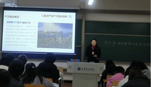 结合学生专业定位,罗老师分析了产业需求和人才匹配的重要性。她指出:“产才融合是指人才与产业深度融合,优秀人才助力产业升级,产业发展吸引人才汇聚的一种发展模式。”一个地区产才融合的优势在于能够实现人才与产业的双向互动,这为学生们提供了明确的职业规划方向。