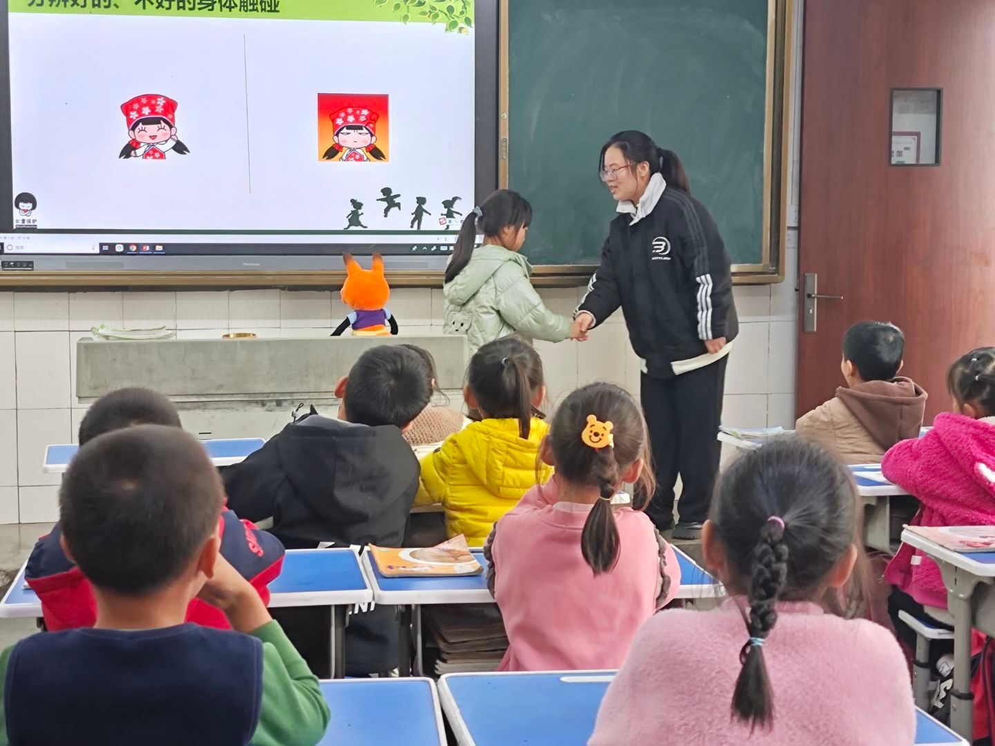 为了深入普及儿童性教育,帮助孩子们更好地认知自我身体,学会辨别并有效应对不适当的身体接触,10月29日下午,通识教学部和花果书院联合的书院项目——“守护青禾”防性侵志愿服务支队,赴重庆市合川区沙鱼镇完全中心小学开展防性侵志愿活动。本次活动由陈明波老师带领,学生讲师郭庆越、李鑫和田冰,以及17名助教一起共同完成,大家一起为小朋友们带来了一堂生动的安全教育课。