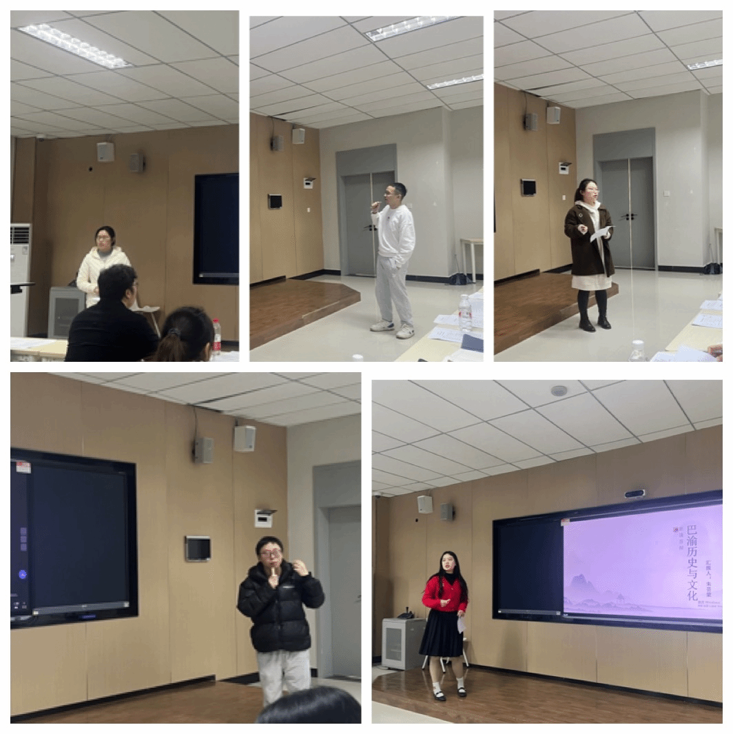 地域文化与城市发展研究院的罗晓霞老师分享《博物馆里的中国》 参加西浦全国大赛教学创新大赛的经验。考古学出身的罗老师以文物为线索设计课程内容,充分利用线上、线下博物馆资源开展体验+场景式教学。远景学院的杨阳老师介绍了《国际关系理论与实践》课程建设的大体思路,包含了建设历程、教学中要解决的重点问题等。远景学院的唐智盟老师则以《博雅英语》课程现状入手,分主题设计大纲,运用POA教学法。钓鱼城科幻学院的吴灵霜老师介绍了《科幻与想象力》的课程建设情况,在前期罗磊等老师的牵头下,大纲主题确定,第一版学生阅读材料已投入使用。通识教学部的张娴雅老师以参加西浦大赛的题目“跨文化哲学对话——苏格拉底与孔子经典阅读的创新教学设计与全过程评价”分享《苏格拉底、孔子所开创的世界》的课程建设。通识教学部的冯丹老师则介绍了新课《走近人工智能》的建设情况,初步确定了大纲内容以及教学方法。