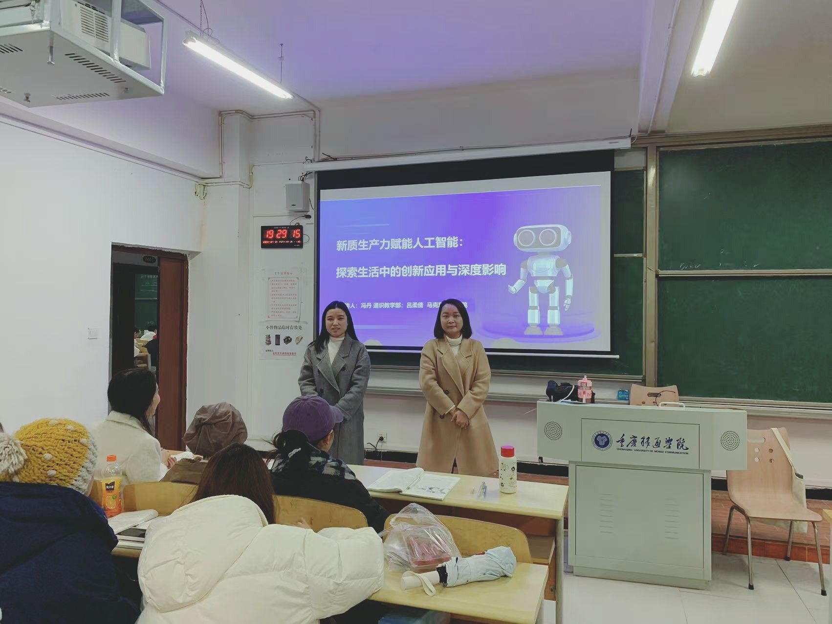 为了提供更全面、多维度的知识传授与学习体验,助力学生养成批判性思维及跨学科视野。2024年12月10日,马克思主义学院主讲《形势与政策》的吕柔倩老师受邀来到通识教学部冯丹老师《信息技术与社会》课堂,两位老师围绕“新质生产力赋能人工智能”这一主题,与同学们共同探索AI创新应用,并深入剖析新质生产力对社会发展的深远影响。