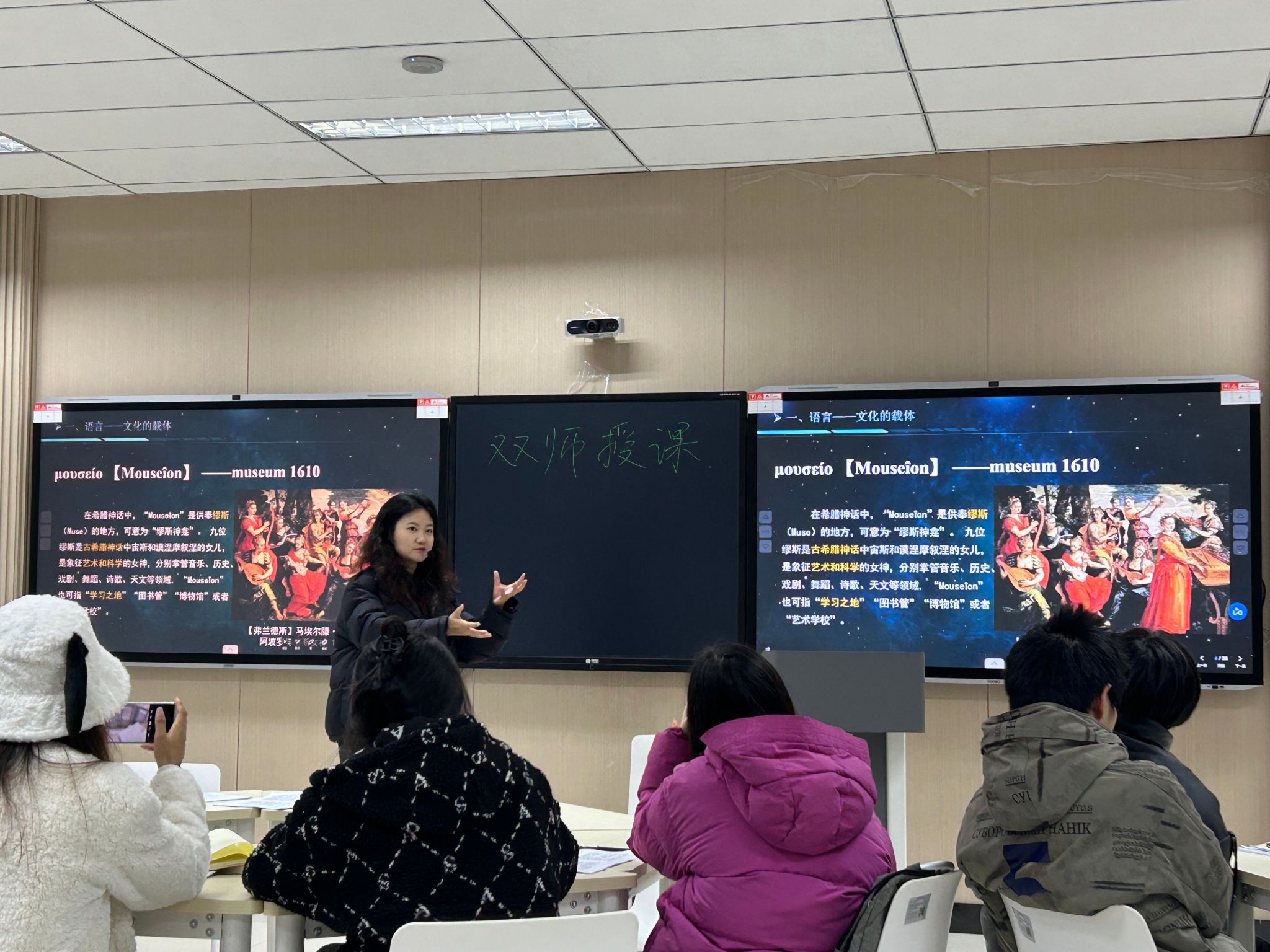第一次体验双师授课,我深感其妙。两位老师各展所长、互补互助,使我受益匪浅。我体会到在哲学和语言交融的世界里,古希腊德语邂逅,形成独特魅力;体会到绘画和雕塑艺术蓬勃发展,其作品充满了人性的光辉与对自然的热爱。细腻的笔触、生动的色彩,不仅是对古典艺术的继承,更是大胆的创新。此外,我们还与老师同学尽情交流,分享对画的感悟,启发了思维,拓展了视野。