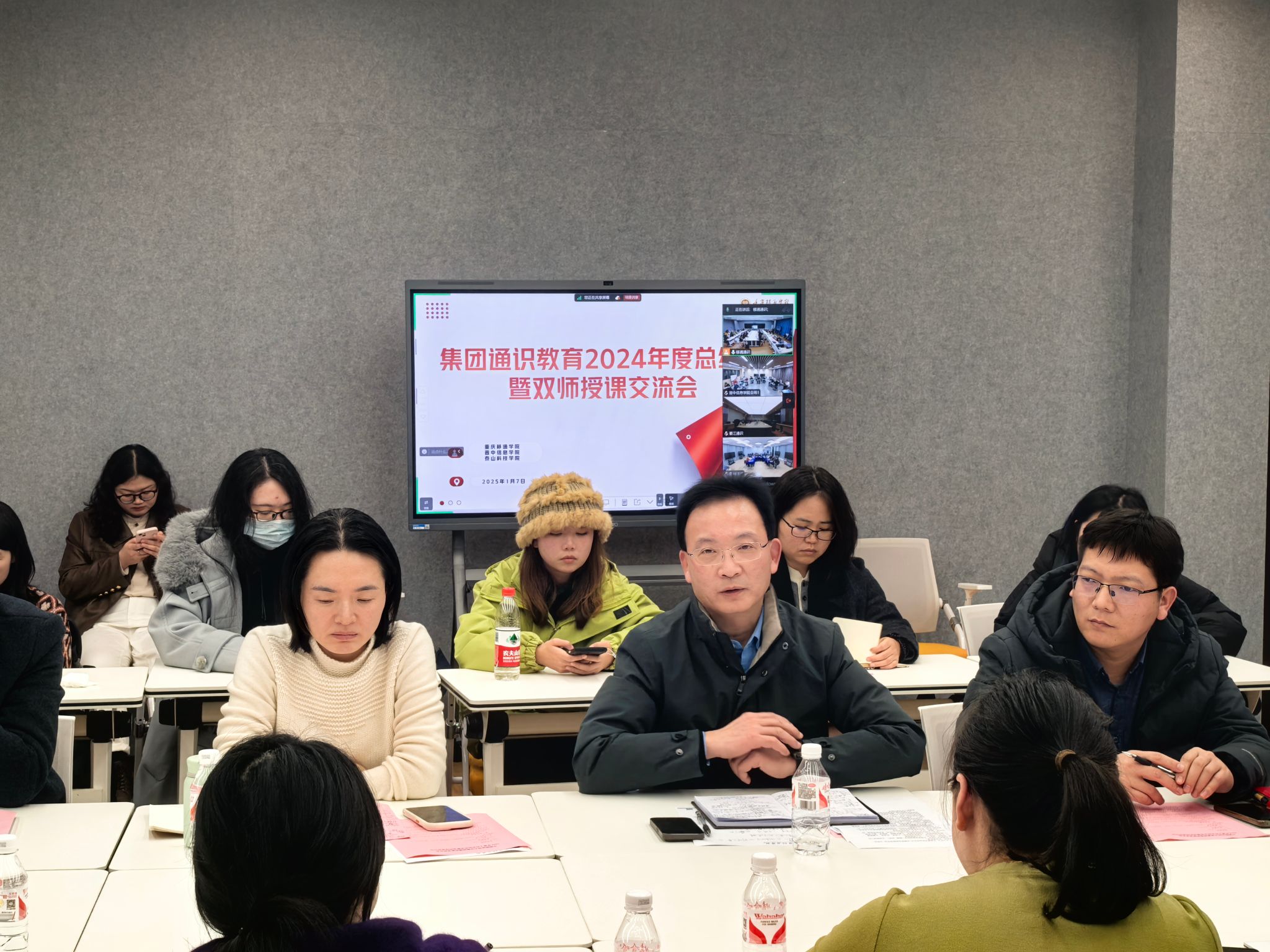 为促进集团三校四区通识教育工作的深入交流与合作联动,分享双师授课的成功案例与教学经验,对大通识的未来发展方向进行展望,1月7日下午,集团通识教育2024年度工作总结会暨双师授课研讨会在三校四区通过线上线下结合方式同步举行。集团行政总裁、通识教育分管领导王征、重庆移通学院校长吕翊、三校四区通识教育分管校领导出席会议,各校区通识教育部门负责人、教研室主任、通识教学部全体教师共同参会。会议由重庆移通学院通识教学部主任皮若兰主持。会议分为两个阶段,第一个阶段为三校四区双师授课工作的交流与探讨,第二阶段为各校区通识教育年度工作总结与展望。