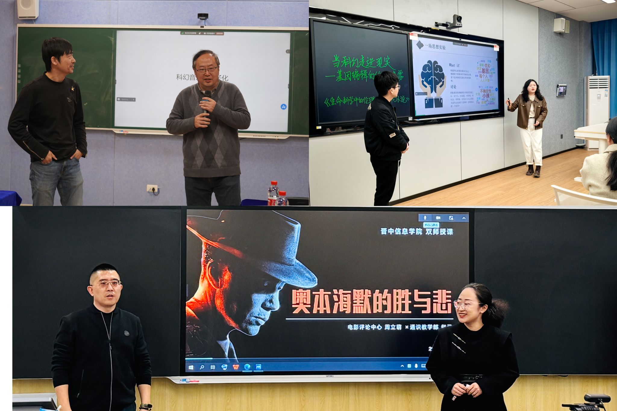 在双师授课案例展示环节,来自三所院校的六位教师分别展示了他们的双师授课实践案例。重庆移通学院通识教学部的向小雪老师和钓鱼城科幻学院的吴舒老师通过科幻与现实的结合,用趣味性的实验,从各自的专业角度分析基因编辑的伦理问题,给大家带来充实的“当科幻走进现实——基因编辑的伦理迷雾”课堂。晋中信息学院通识教学部的赵云老师和电影评论中心的周立萌老师从物理和电影学的角度,解读了奥本海默的传奇人生。两位老师用视频导入,逐渐揭开“奥本海默传记——现代的普罗米修斯”背后令人深思的现代科技观问题。泰山科技学院蓬莱科幻学院的杨平老师和艺术教育中心的锂洋老师则通过科幻与艺术的融合,讲解“科幻音乐的四个维度”,在短短15分钟的时间里,展示了跨学科知识的内在融合,也体现了不同学科的多角度思维。