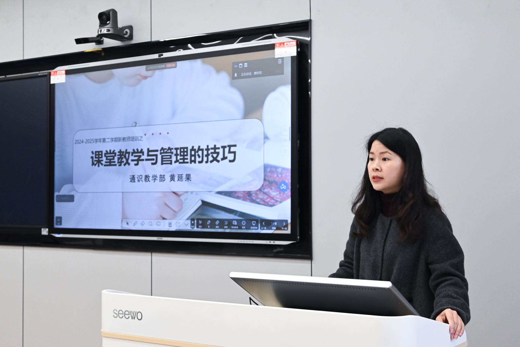 春风拂槛季,通识教学部注入一股教育新生力,目光灼灼的青年教师带着创新思维与育人热忱集结启航。为助推新成员实现角色蜕变、深植通识理念、锻造教学硬实力,通识教学部于2月21日上午,在天空书院和智者楼双线联动,同步举办合川、綦江双校区新教师入职培训会。本次会议由通识教学部副主任李娇、张艳主持,双校教研室主任及新入职教师悉数参加。培训主要从考勤及试用期管理办法、部门管理及通识教育课程体系、新教师通识首课注意事项、课堂教学与管理的技巧、教师行为规范和学校相关文件五个方面展开。