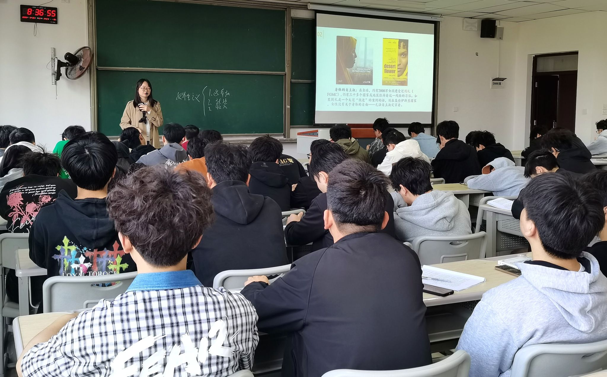 课程尾声,两位老师对本次双师授课进行总结。力冬梅强调:“艺术的力量在于唤起共情,而共情是改变的开始。《沙漠之花》的价值不仅是揭露苦难,更是展示女性生命的韧性。”陈明波则从哲学的角度进行了总结:“真正的解放是让每个个体——无论性别——都能在尊重差异的前提下实现自由发展。”