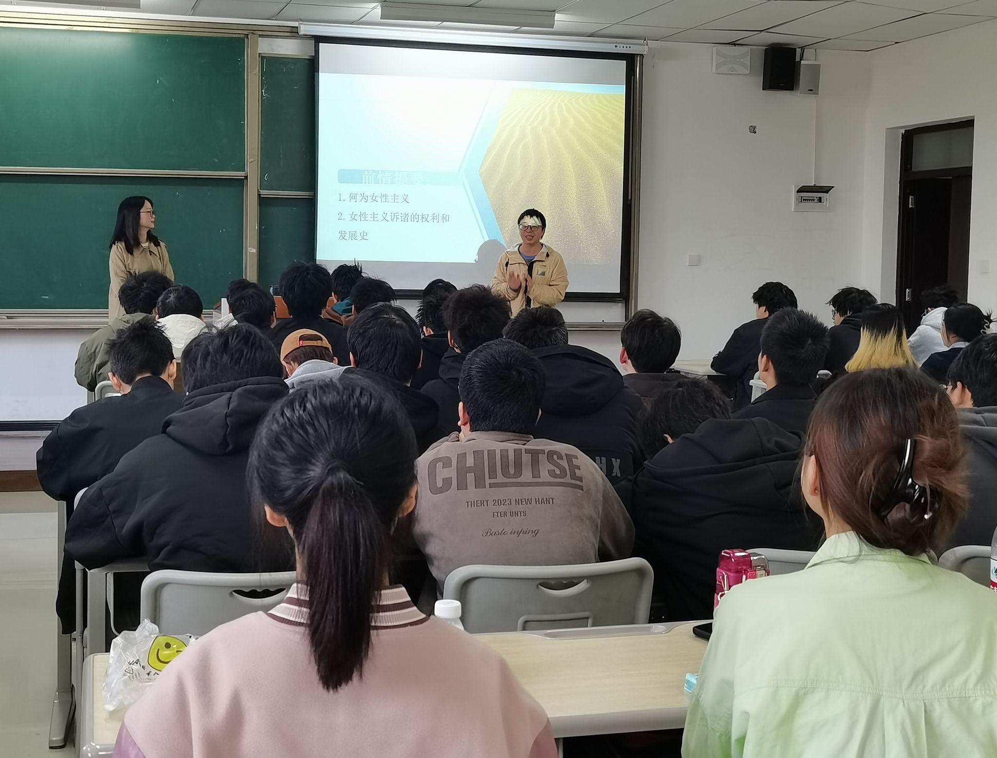 为进一步实现课堂形式的多样化、培养学生跨学科的思维,为学生提供不一样的课堂体验,引导学生从多个维度、多个视角去看待问题,3月26日上午10点,通识教学部的陈明波老师与电影评论中心的力冬梅老师在9403教室联袂呈现了一堂别开生面的双师课程。本次课程以经典电影《沙漠之花》为媒介,通过哲学与电影学的跨学科对话,引导学生从多维度探讨女性主义议题,展现了沉浸式课堂的独特魅力。