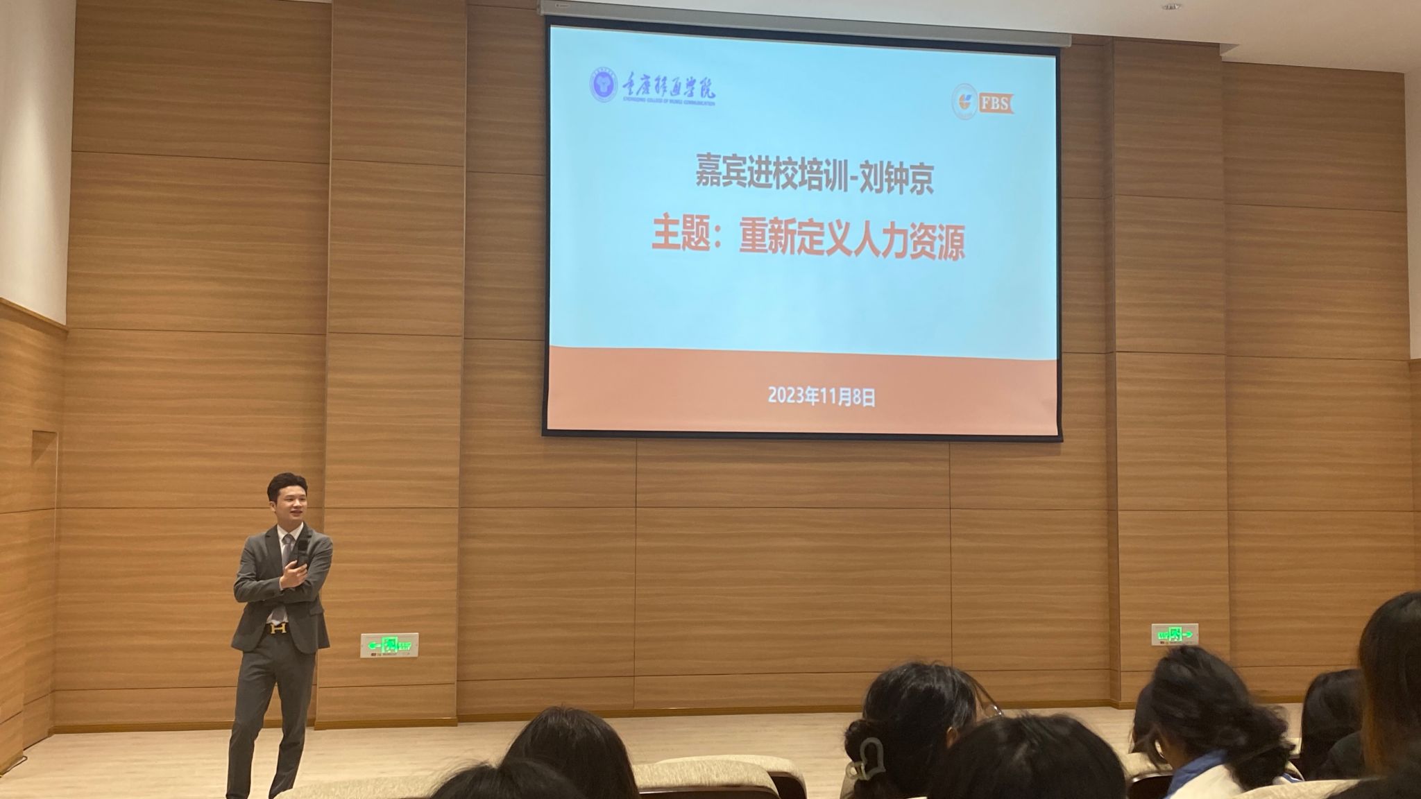 为帮助学生深刻地理解人力资源,引领学生在职业发展的道路上跟紧时代的步伐,2023年11月8日14:00,合川新商科教学部在六度空间-创梦空间举办了以“重新定义人力资源”为主题的企业专家进校园专题讲座,特邀上市公司人力资源专家顾问、重庆市企招招人力资源管理有限公司总经理刘钟京作为主讲嘉宾,帮助我院学子从底层逻辑去理解人力资源。此次培训,共计一百八十多名商学院学生和数名老师参加,其中包括新商科教学部谢小玲老师、淬炼商学院王偲老师等。