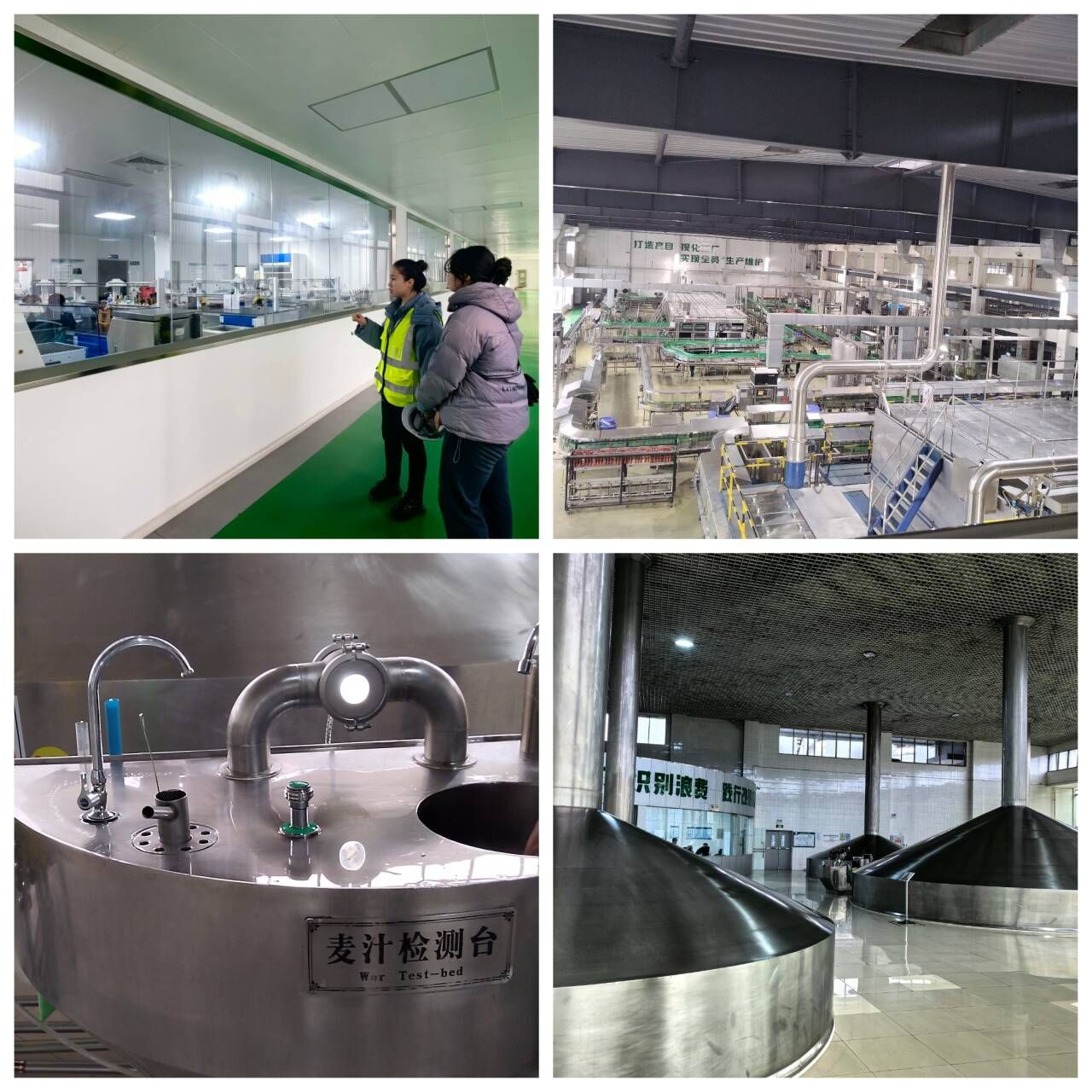 紧接着,工作人员带领同学们来到了公司的文化长廊,并详细讲解了企业的发展历程以及整个啤酒行业的发展历程。随后同学们来到了啤酒生产车间,工作人员为同学们讲解了啤酒酿造过程中的“三锅两槽”和生产车间啤酒装罐的流程,并强调了在整个啤酒的酿造过程中,卫生和控制温度非常重要,因为细菌和其他微生物可能会影响啤酒的品质。每个步骤的时间、温度和配方可以根据具体的啤酒类型和风味需求进行调整。