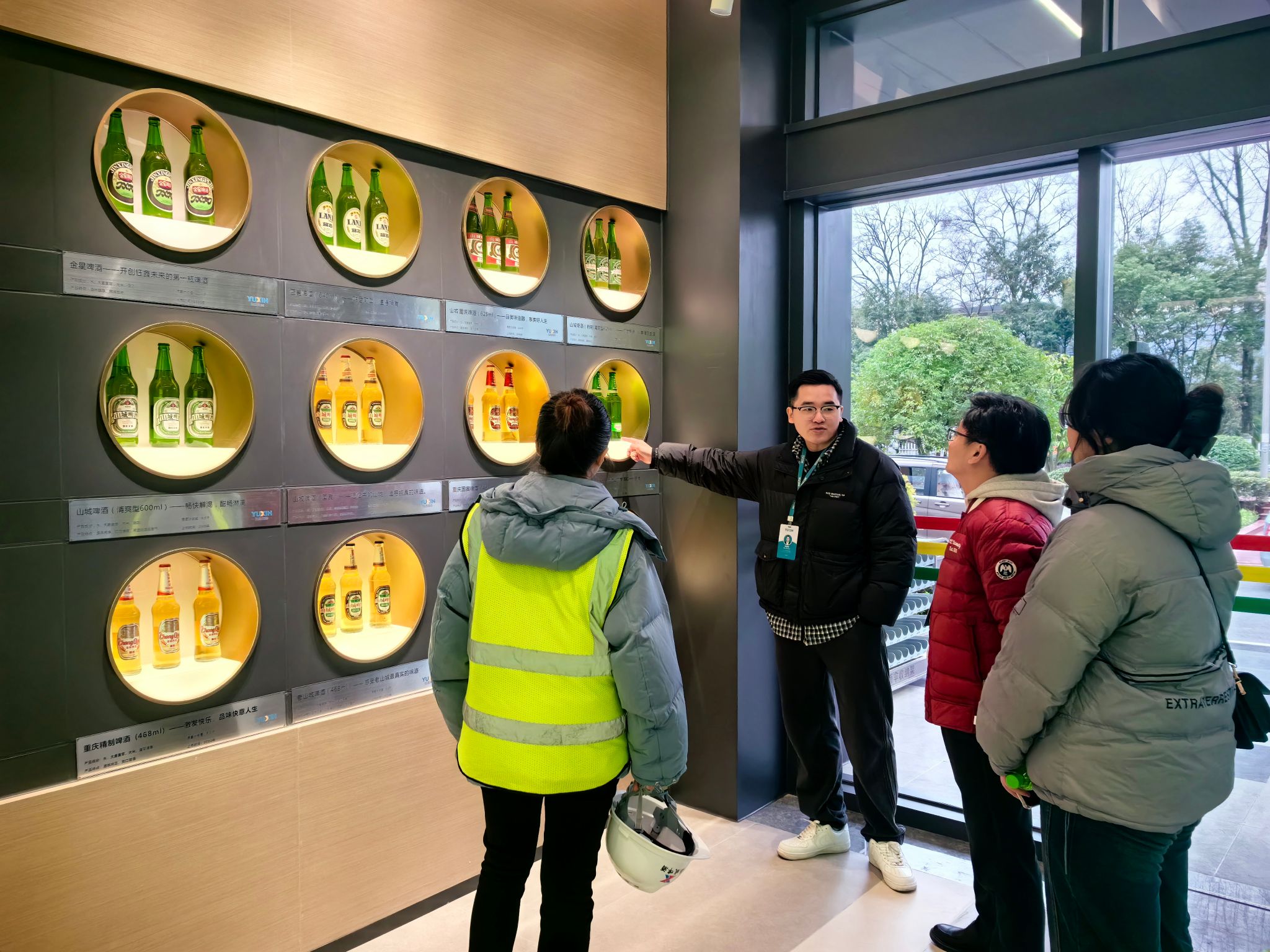 重庆钰鑫实业集团有限公司市场总监袁伟、品牌经理朱骏林对到访的同学表示了热烈的欢迎!首先,袁总为同学们介绍了重庆钰鑫实业集团有限公司的办公大楼和配送车间,并带领同学们来到距离公司一公里外的重庆嘉威啤酒有限公司进行参观。品牌经理朱骏林从销售渠道、适用人群、现有种类、口感等各个方面为同学们讲解了公司现有生产的啤酒和果汁气泡水饮料的两大类快消品。同学们对公司的啤酒和果汁气泡水饮料两大类快消品有了初步的认识,了解了其销售渠道、目标消费群体、产品种类和独特口感。