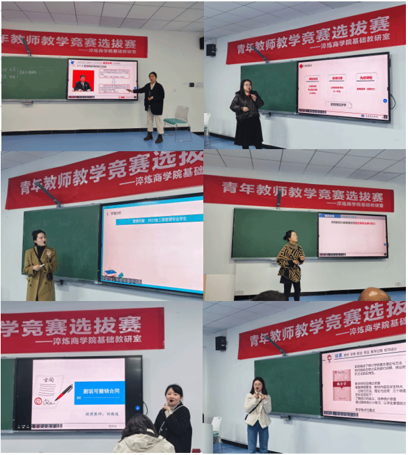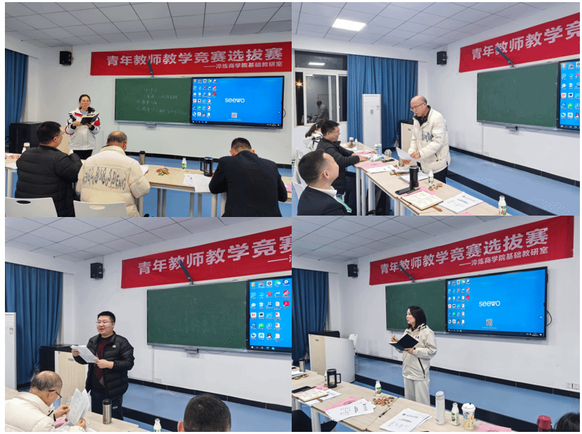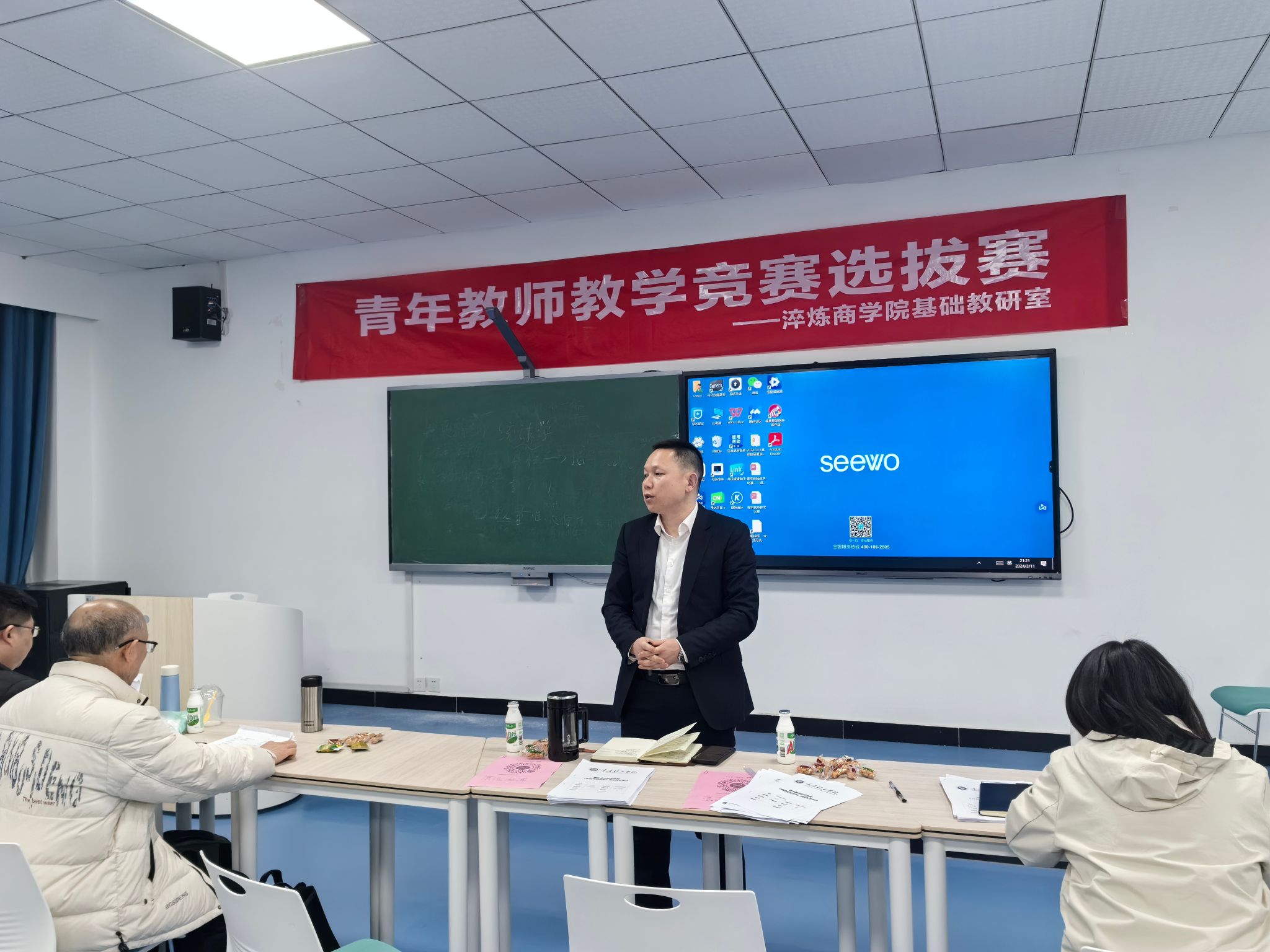 仰止弥高,钻之弥坚。为了提高基础教研室的青年教师教学能力和业务水平,同时为“2024年淬炼·国际商学院青年教师教学竞赛”做准备,3月11日16:00-22:00,淬炼商学院基础教研室于5202智慧教室开展了“青年教师教学竞赛选拔赛”,活动由基础教研室主任李邓金主持,基础教研室全体教师参加,本次参赛的五位评委分别是:基础教研室李邓金老师、蒋金华老师、陈郑老师、张成姣老师、杨鸿杰老师。