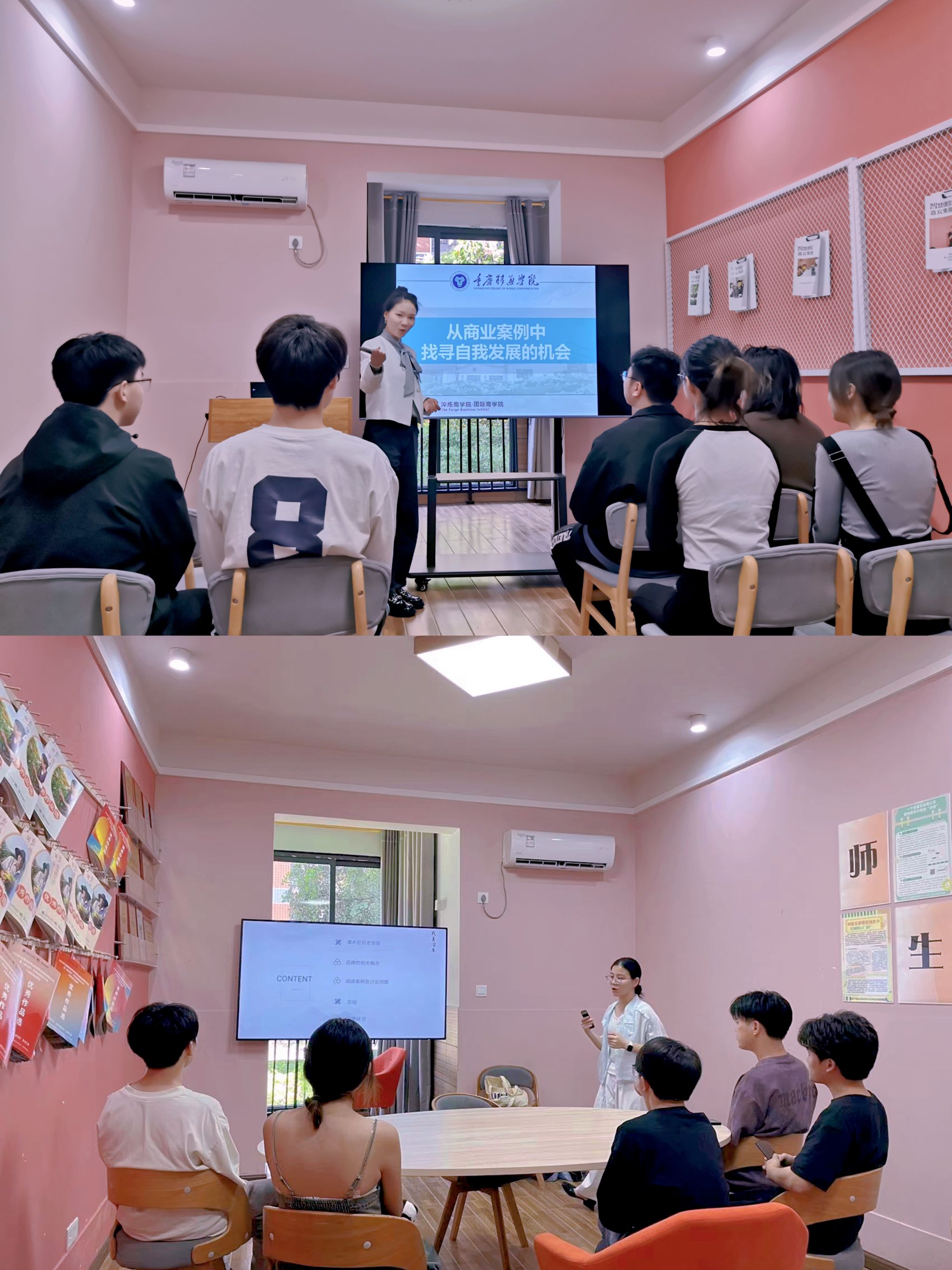 第22期聚焦京东集团,由周琴宇老师带领学生对京东车主易贷业务的兴起与衰落进行了解与深入讨论,从多变的市场环境和业务发展趋势出发,引导学生勇于尝试、积极寻求自我发展。第27期瞄准谭木匠,主讲人廖林老师从品牌塑造入手,带领学生一起探讨谭木匠的品牌故事、文化传承和视觉形象,使学生在愉悦的氛围中碰撞出创新思维的火花,同时领悟到诚信的重要性。