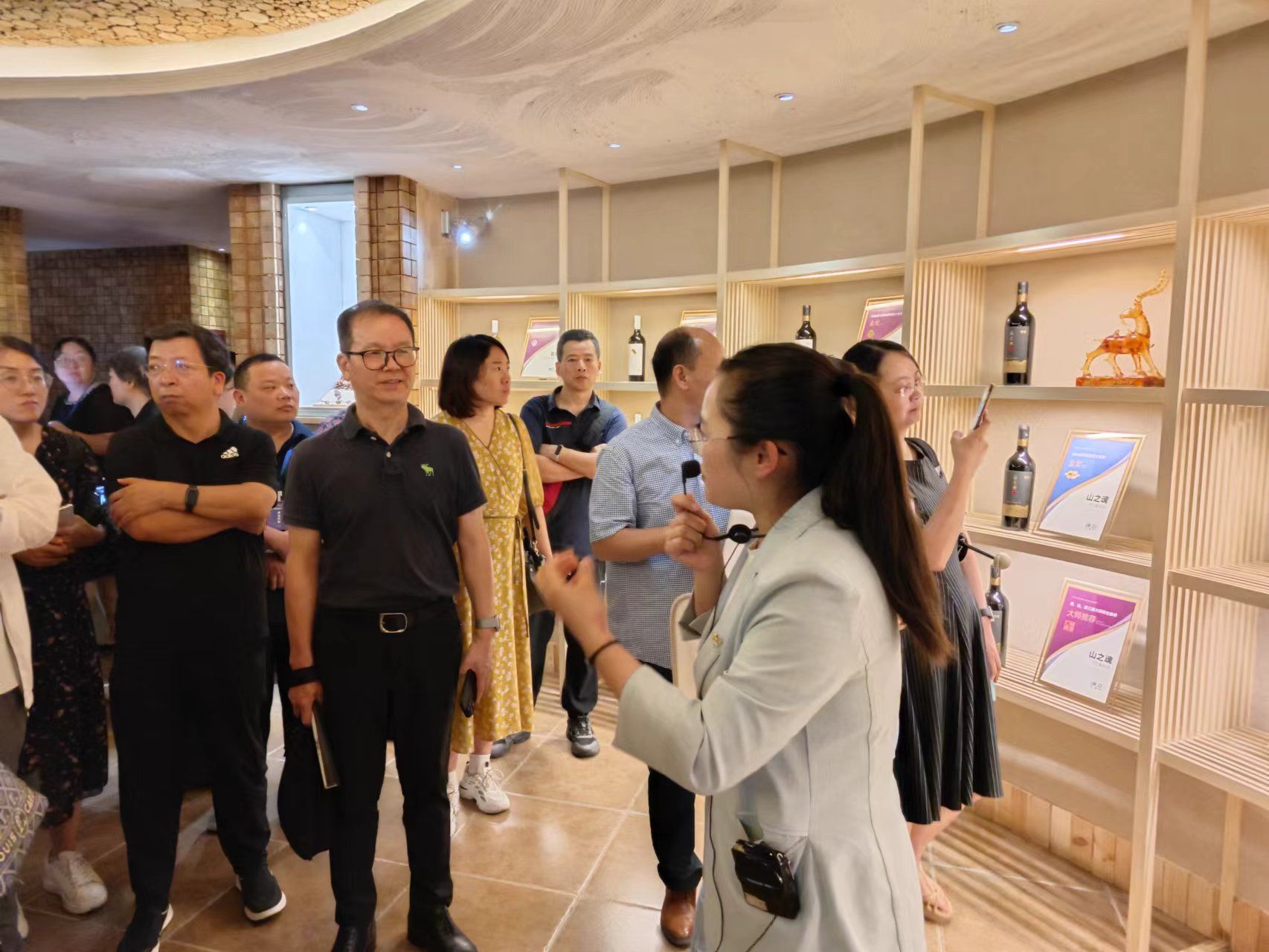 最后,参会代表们走进宁夏梦驼铃科技有限责任公司。在讲解员的带领下,参观了梦驼铃时代传承厅、数字赋能厅与智慧绽放厅,初步了解了梦驼铃的企业愿景与使命、党建工作、发展历程和业务布局等情况,对新时代工匠精神有了更加深入的理解和认识。