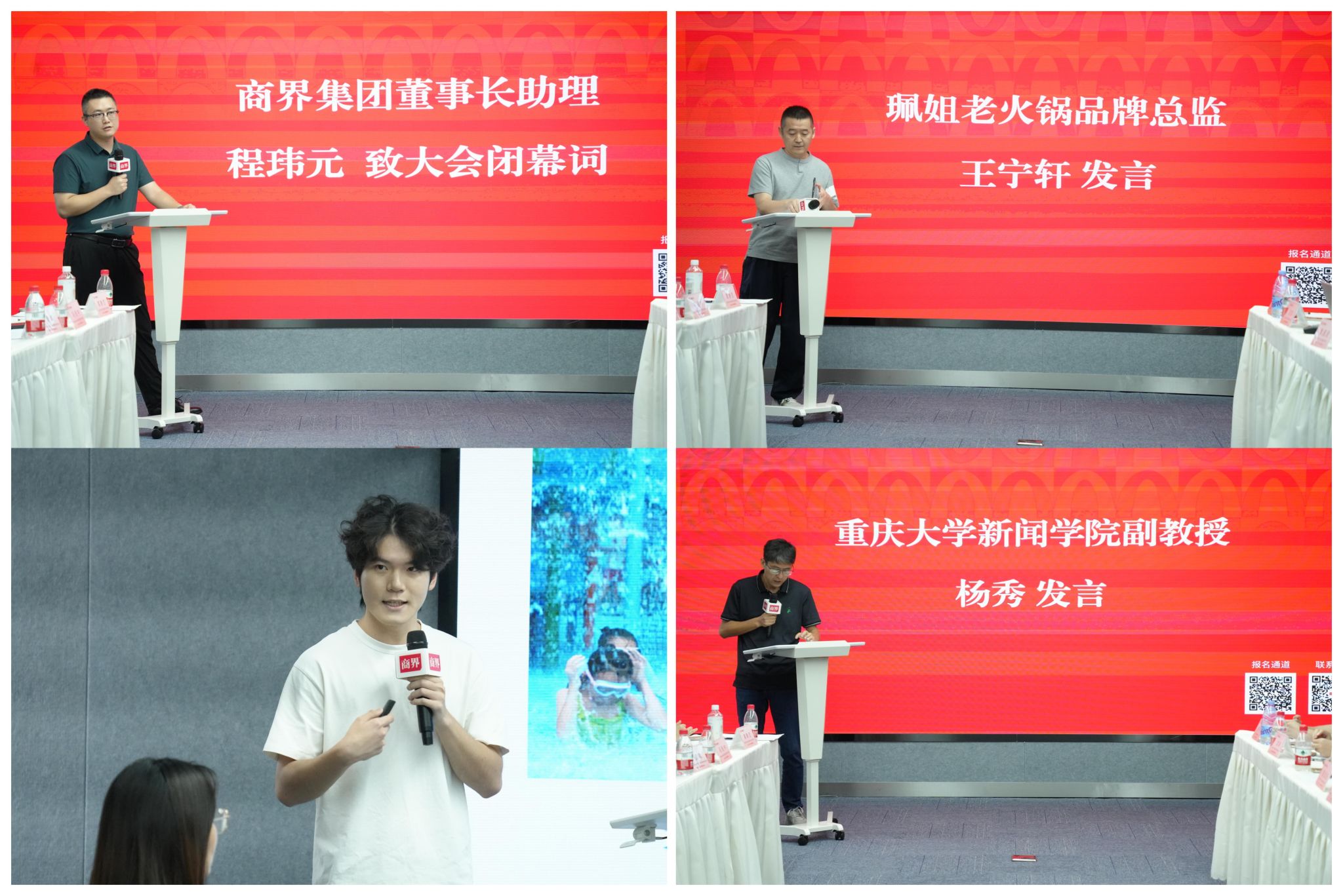往届参与品牌发言人、珮姐老火锅品牌总监王宁轩分享了品牌的创业故事,并表达了对校企合作的愿景。第三届重庆大学生广告策划大赛获奖选手代表胡宇杭同学以年轻策划者的身份,分享了他的优秀策划案例。重庆大学新闻学院副教授杨秀代表高校对商界构建平台与优秀企业品牌合作表示了高度认可。商界集团董事长助理程玮元先生对本次会议作了总结发言,他指出,通过竞赛可以挖掘学生的潜力,为品牌年轻化发展带来新的方向。创新和质量是品牌的生命线,不断探索,小创新也能引领大变革。