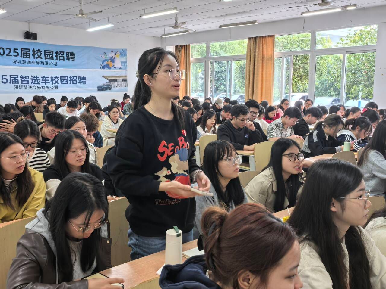 在当前社会竞争压力巨大、就业形势日益严峻的大环境下,为提高学生的新商科专业基础和实战技能,让学生能更深入的了解市场需求,调整教学内容和方法,为即将实习就业奠定扎实基础,10月18日上午10点,我校淬炼商学院师生在这细雨朦胧、秋高气爽的周五,踏着满园金桂落黄,在暗香浮动的南校区5101教室,开展了一场校企合作暨企业高管进课堂的活动。活动邀请了重庆珍爱卫生用品有限责任公司品牌推广经理林雅婷女士来到《新商科案例分析》课程的课堂。本次活动由课程组负责人李邓金老师组织和主持,参加此次活动的还有淬炼商学院新商科案例分析课程组的陈郑老师、李红艳老师和徐桂霄老师,还有来自2025届财务管理、工商管理、市场营销专业毕业班的140多名学生。