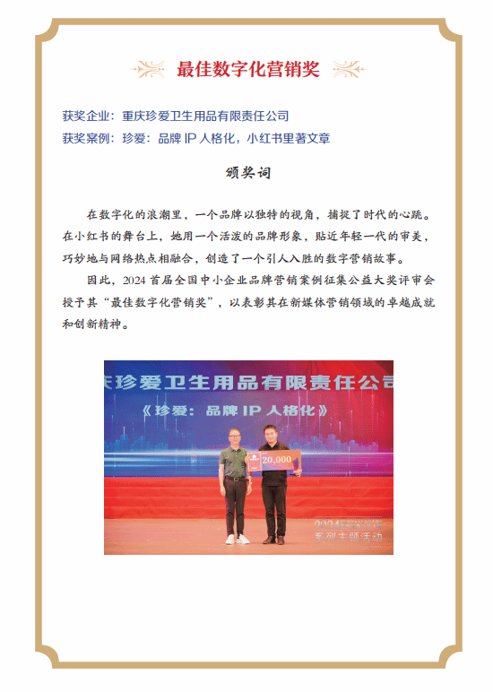 随后陈郑老师就多年来教授《新商科案例分析》课程的教学经验和实践理念,其教学团队师生结合珍爱公司的产品如何推广和营销,使品牌IP人格化,在小红书里著文章。通过市场调研、产品与用户、营销策略设计、营销策略实施、营销效果和营销优化等方面进行深入分析,将师生团队的研究和教学成果整理成册,形成了长达36页的经典教学案例,并推送到2024年全国中小企业品牌营销案例征集公益大奖,荣获“最佳数字化营销奖”。并在本次活动现场同林经理一道,给全体师生进行分析和解读。通过陈老师的精彩解读,在场的师生无不惊叹于陈老师博学的营销理论并折服于其严谨的治学态度,活动现场爆发出了热烈的掌声。