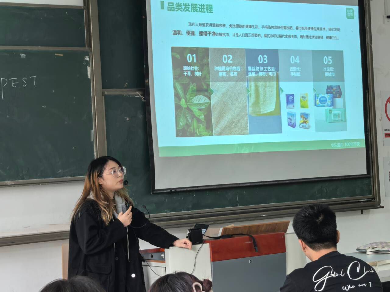 本次活动主题围绕校企合作单位的营销产品——珍爱湿巾为重点的现场营销产品的介绍和推广。活动伊始,珍爱公司的林经理就行业发展、公司现状和产品情况等方面进行了深度解读。通过介绍使现场的一百多名师生深刻认识到珍爱产品从加工工艺、包装设计、品牌营销等方面的精心和用心。作为重庆本土的湿巾品牌,珍爱公司通过线上线下相结合的组合营销方式,树立良好的企业人设,从线下的超市柜台到全国推广的小红书、淘宝、抖音等平台线上推送,并结合与其他品牌互动提高知名度等方式,通过二十三年的匠心独运,秉承绿色可持续发展理念,用植物力量带来健康洁净生活,进而打造新一代老国货的企业形象,成为众多新老客户持续的关注和依赖。