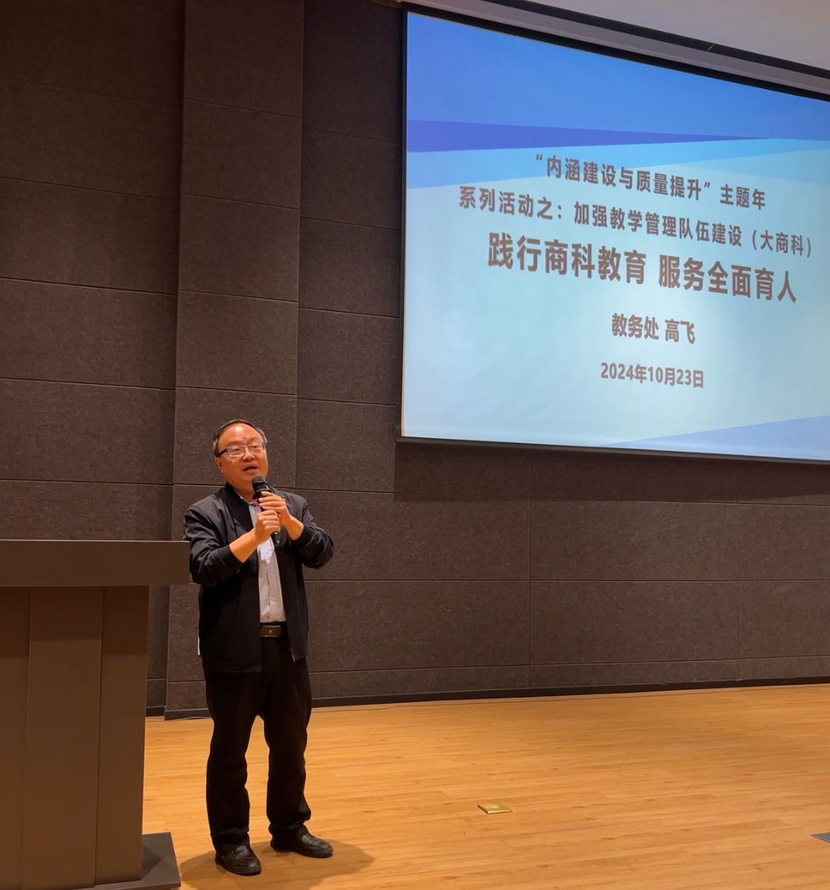 为更好地理解学校教育制度,提升专职教师业务水平,推动全面育人工作,10月23日下午14点在六度空间105°会议报告厅,教务处处长高飞受邀为商科板块专职教师做“践行商科教育,服务全面育人”专题讲座,本次讲座由合川新商科教学部统筹,合川校区商科教育板块全体专职教师参加。