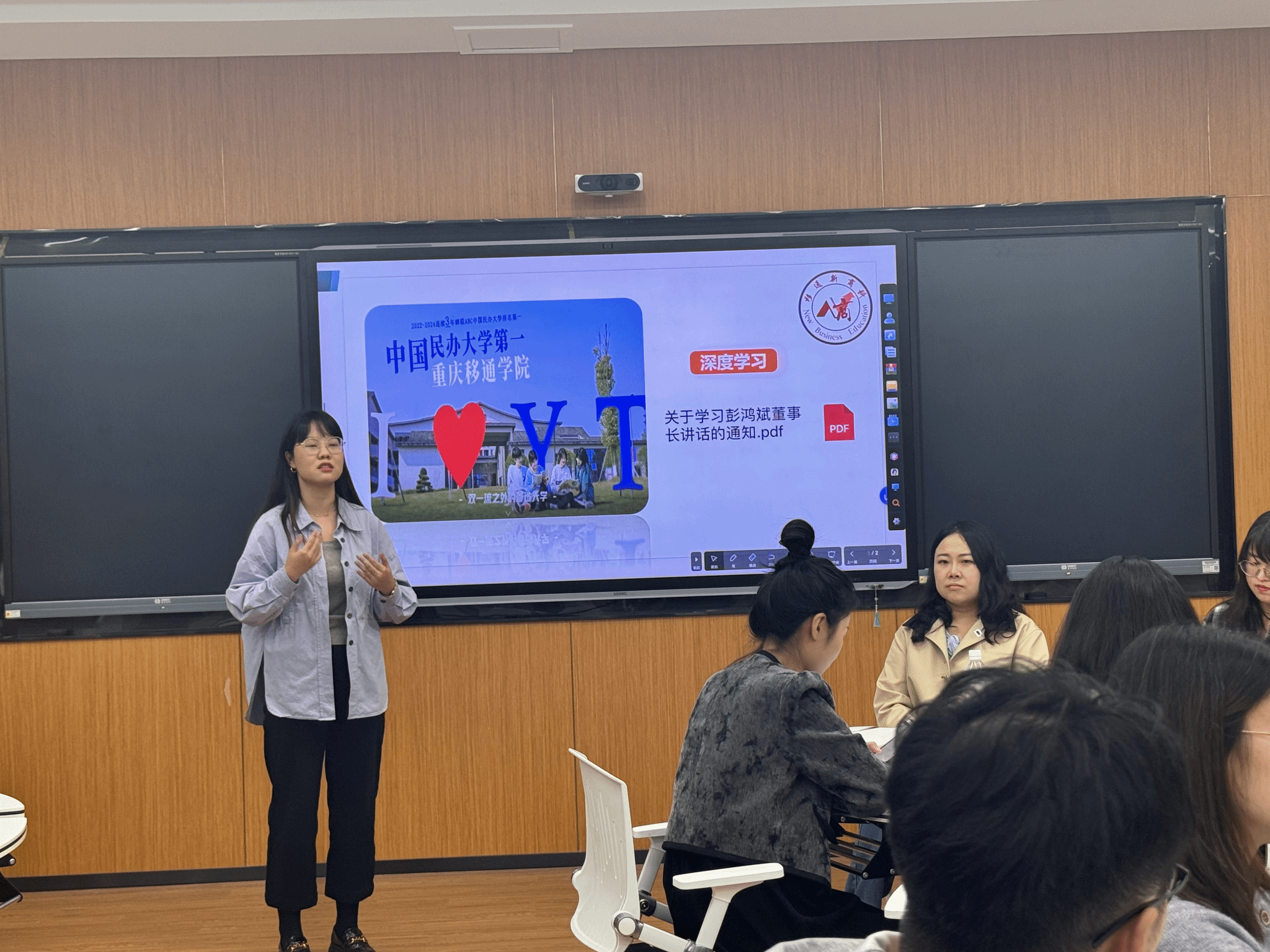 马克思主义基本原理教研室的石静志老师则结合自身经历,分享了对《世上每个人花期不同,你也会和美好相逢》的理解。她讲述了一个曾经自卑且有抑郁倾向的学生,在参与学校完满活动后,通过舞台表演找到了自我,提高了自信心的故事。这让她深刻体会到,每位学生都是独一无二的个体,拥有不同的成长背景、兴趣爱好和发展方向。作为教师,我们应该尊重学生的个性,鼓励他们按自己的节奏成长,并通过多种途径找到自己擅长并能赋予力量的事情。正如董事长所言,每个人都有自己的花期,只要给予足够的耐心和支持,每个人都能绽放出属于自己的光彩。
