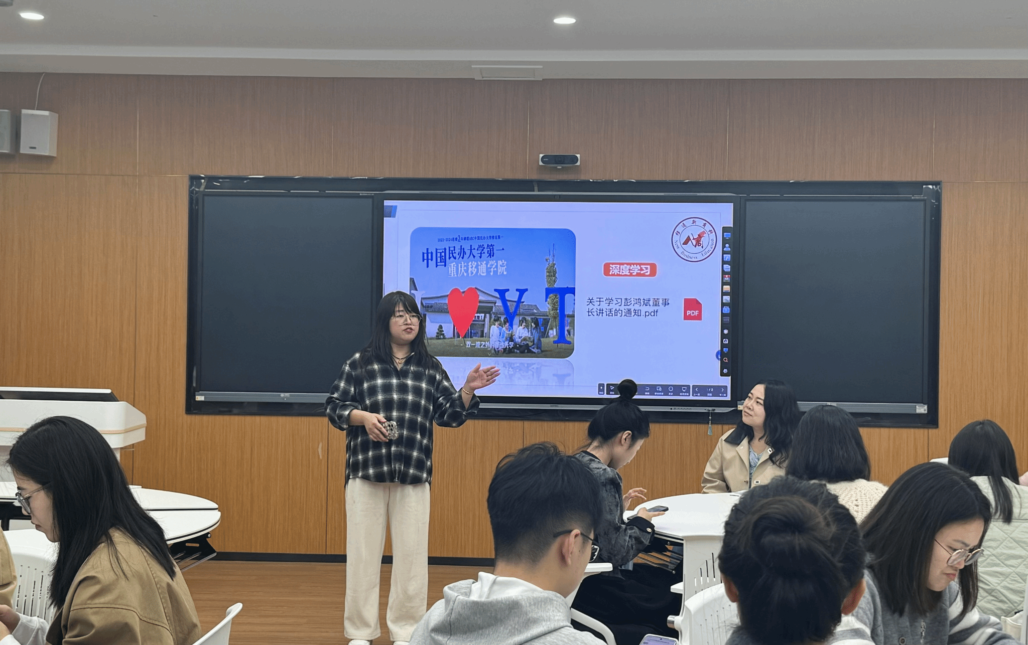领导力提升课程教研室的杨梦雅老师首先分享了对于《见自己,见天地,见众生》的理解。她指出学生在未来的职业生涯和日常生活中,难免会碰到大量专业知识无力应对的棘手问题,这恰恰有力地证明了完满教育和商科教育于培育人才过程中所发挥的不可替代的重要作用。学生在经历 “四位一体” 教育模式的过程中所培育出的逻辑思维能力、创新能力,以及树立起的健康的价值观和人生观,所形成的更为坚实的精神内核,才是促使学生化解困境、迈向成功的不可或缺的关键条件。