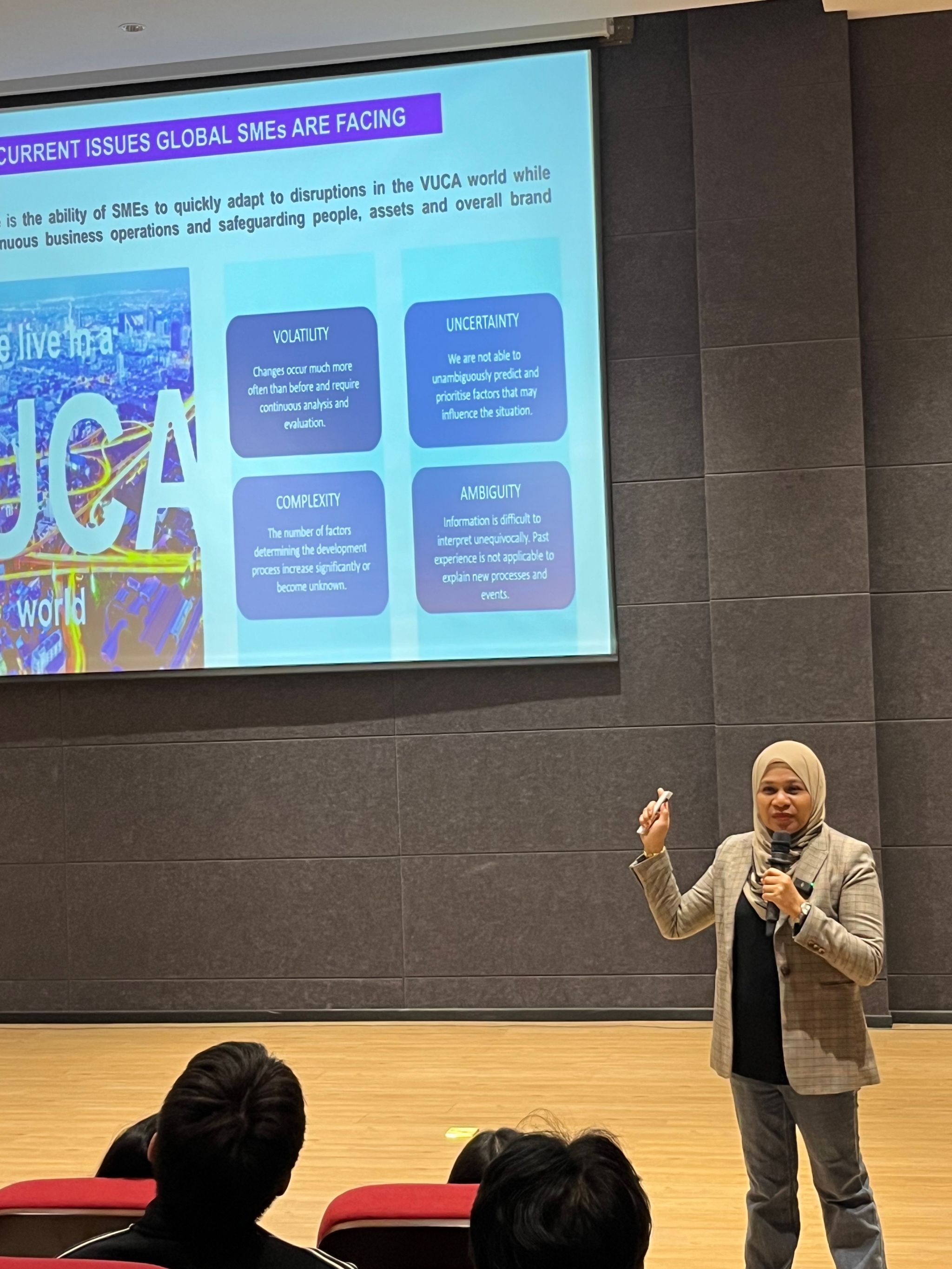 10月31日至11月1日,马来西亚理科大学(2024QS排名137)管理学院副院长哈斯丽萨·阿卜杜勒·哈利姆教授来访我校,围绕中小企业管理、学术研究、人力资源管理及国际就业趋势等主题,开展了四场高层次的交流与分享。这一系列活动深化了我校与马来西亚理科大学的友好关系,为双方在教学、科研和学生培养上的合作开启了新篇章,也为我校师生带来了开阔的国际视野。