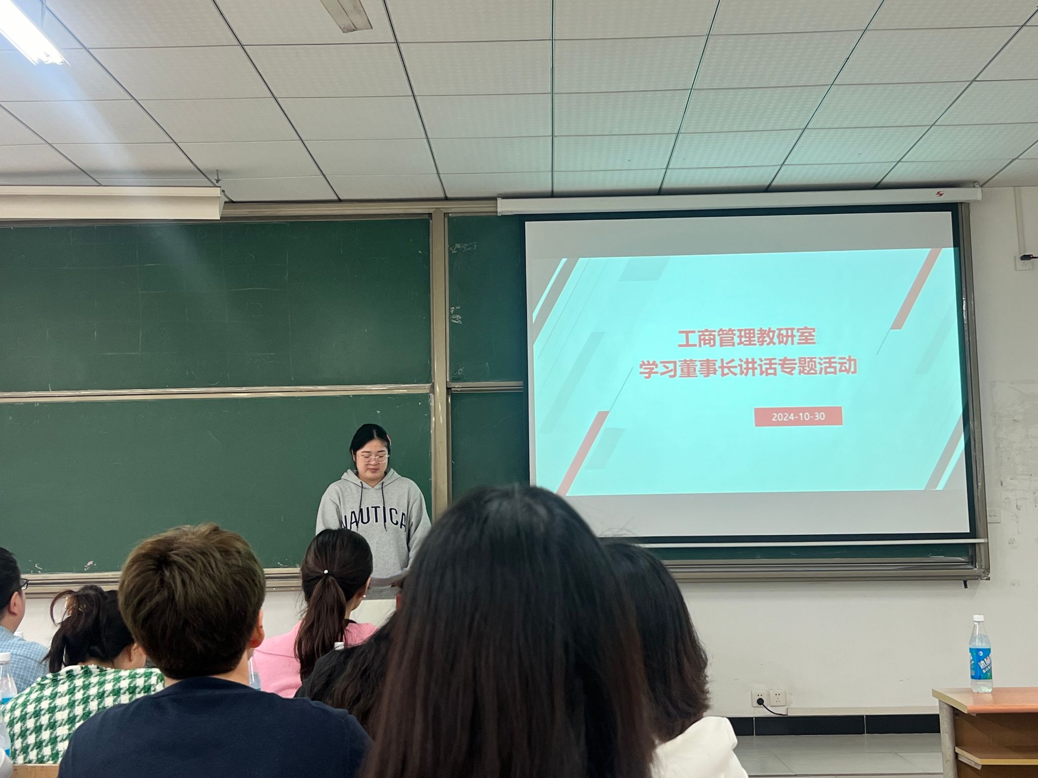 11月6日星期三,工商管理教研室全体成员在5405教室召开了一次重要会议,旨在深入学习董事长的重要讲话精神,并总结期中教学检查的成果。此次会议由教研室主任张栋老师主持,全体教师参加了会议。