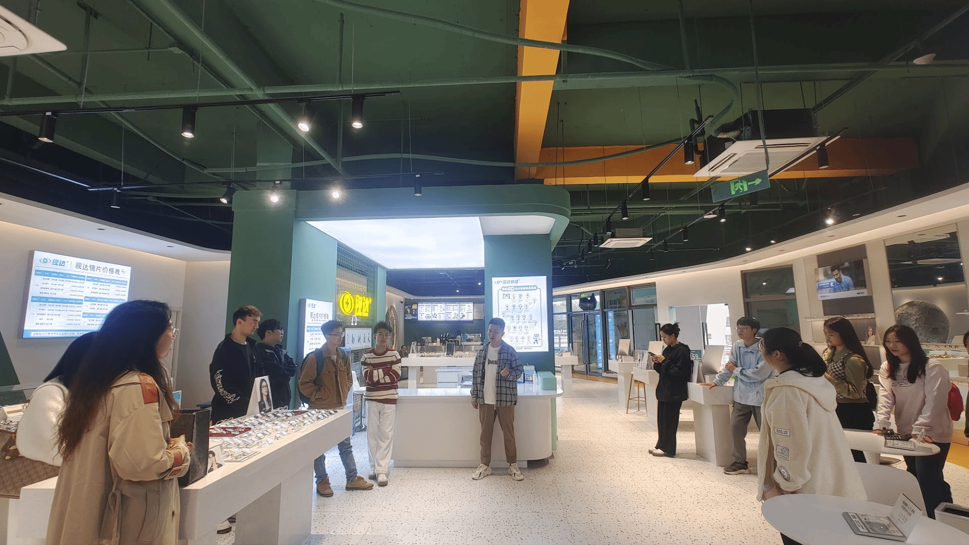 在视达眼镜创始人艾祥桂的精心安排下,师生们首先参观了体育场店的时尚化展厅,详细了解了眼镜从设计、选材到成品的全过程。在参观过程中,同学们详细询问了眼镜产品的特点和市场需求,表现出对该行业的极大兴趣。随后,同学们与视达眼镜艾总进行了深入的交流,了解了公司的发展历程、市场策略、未来规划以及其核心价值观。
