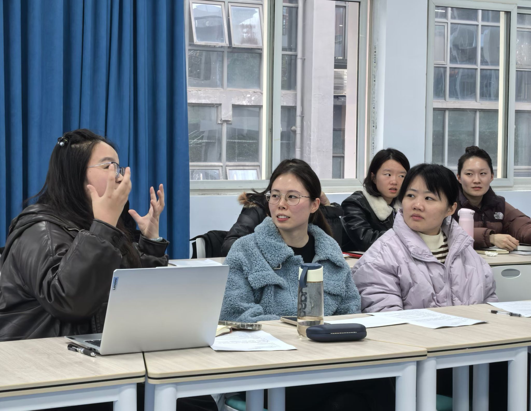 随后,会议进入互动交流环节。在该环节中思想道德与法治教研室的宋珊老师分享到对于教学竞赛,团队力量不可或缺,是老师们提升自我能力的加速器。基础教研室的谭穗老师对此深表赞同,谭老师还进一步就李潇潇老师分享的比赛现场无PPT授课挑战提出了疑问。李老师对此耐心解答,提出了精心准备教学设计、加强知识点逻辑性等应对策略。随后,谭红英、杨鸿杰、胡春香、岳源等多位老师也围绕教学比赛的细节展开了热烈讨论,整个交流环节气氛热烈,思维碰撞不断。