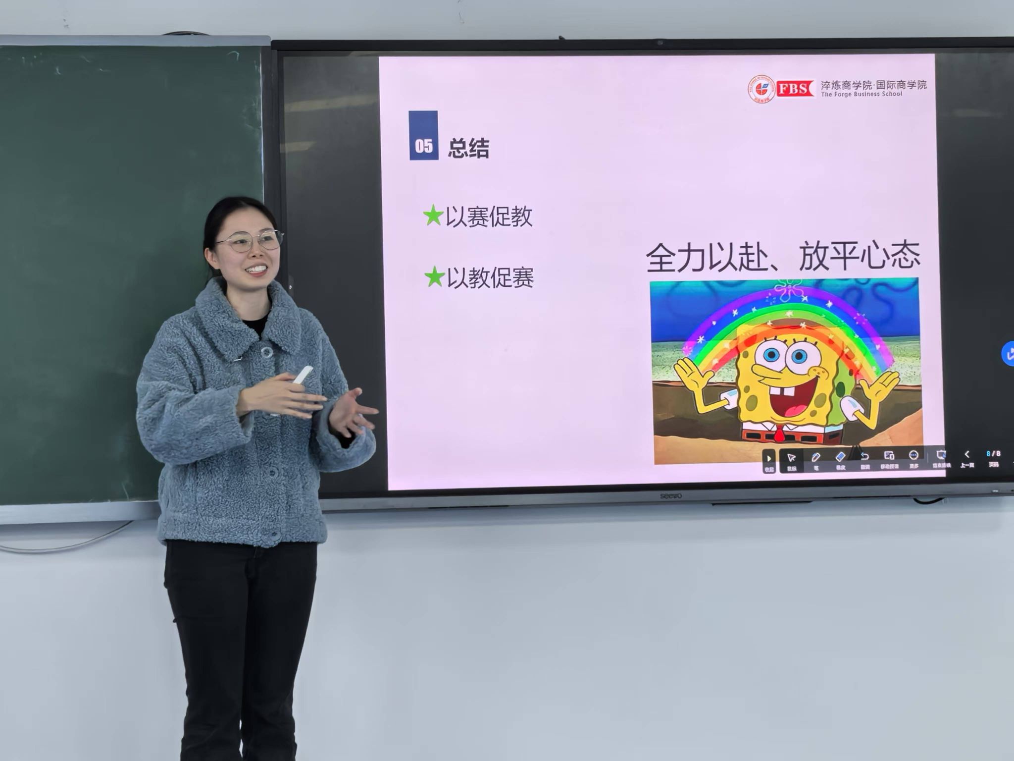 紧接着,淬炼商学院基础教研室的杨鸿杰老师以其丰富的教学比赛经历,为大家带来了另一场视觉与听觉的盛宴。杨老师自入校以来,积极参与各类教学竞赛,屡获佳绩。此次,她重点分享了参加2024年重庆市青年教师比赛并荣获市级二等奖的心得体会,从比赛准备、知识点选取、说课技巧、讲课艺术到练习方法,杨老师倾囊相授,每位老师都听得聚精会神,受益匪浅。