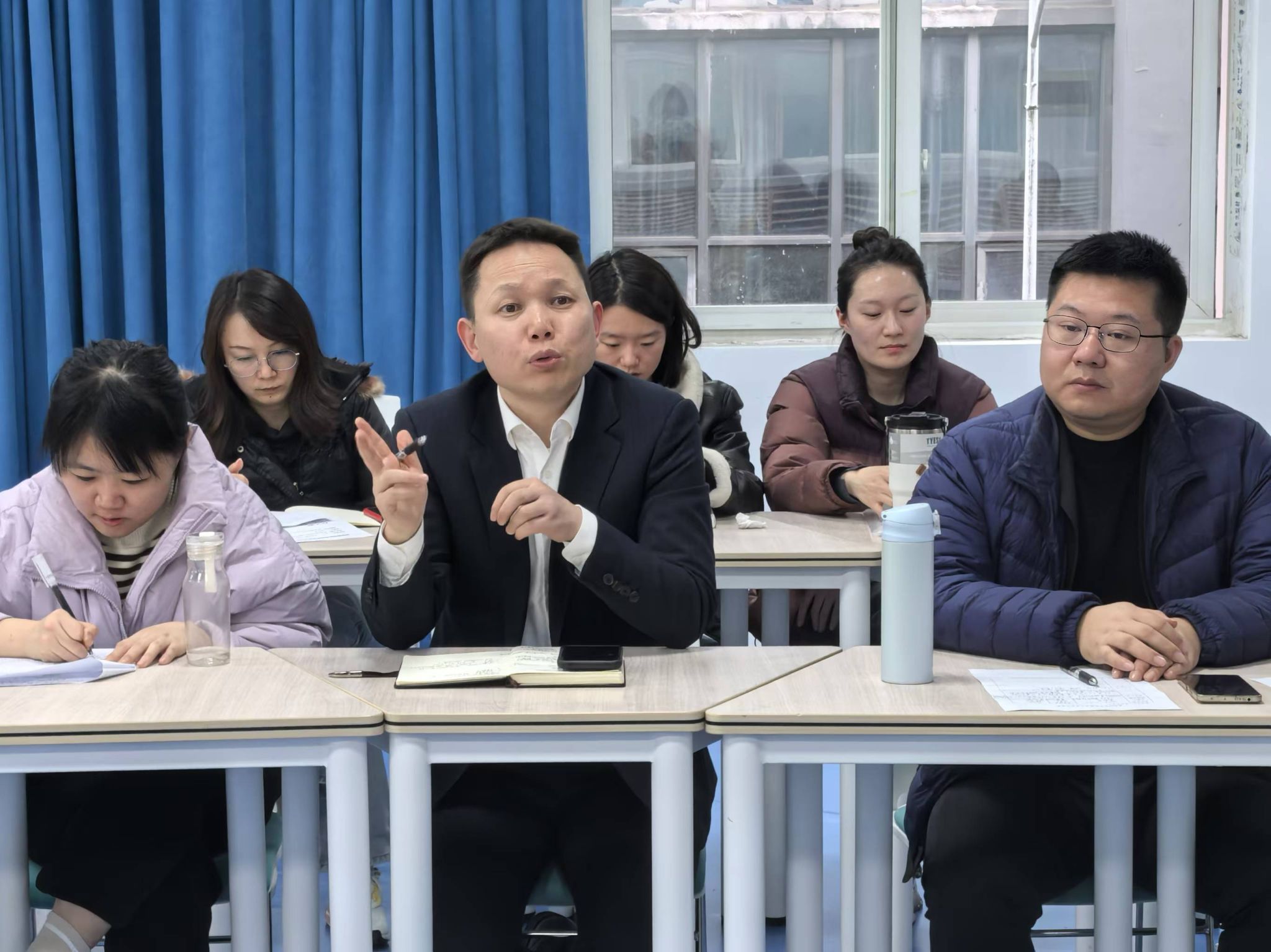 交流结束后,思想道德与法治教研室主任杨勇老师首先进行了总结发言。他高度赞扬了两大教研室在教学比赛方面的优秀表现,并鼓励双方加强合作,以赛促教,以教促赛,共同推动教育质量的全面提升。基础教研室主任李邓金老师紧随其后,表示完全赞同杨老师的观点,并承诺将积极推动两大教研室间的教研融合相关创意的落地执行,让老师们的教学能力更上一台阶。