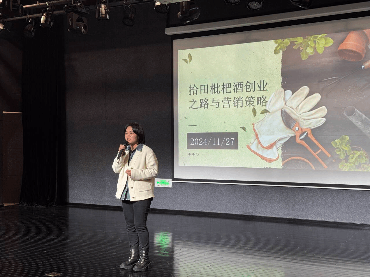 重庆千年净果农业开发有限公司是市场营销专业深度合作的校企合作单位之一。本次讲座主要围绕该公司的主营产品之一拾田枇杷酒展开。刘总首先介绍了她的创业心路历程。因为天气原因,枇杷容易坏,酿成枇杷酒既健康环保又不容易坏,帮扶农业振兴乡村,缘起净果村,聚起有缘人,这是她创业的机遇与原因。