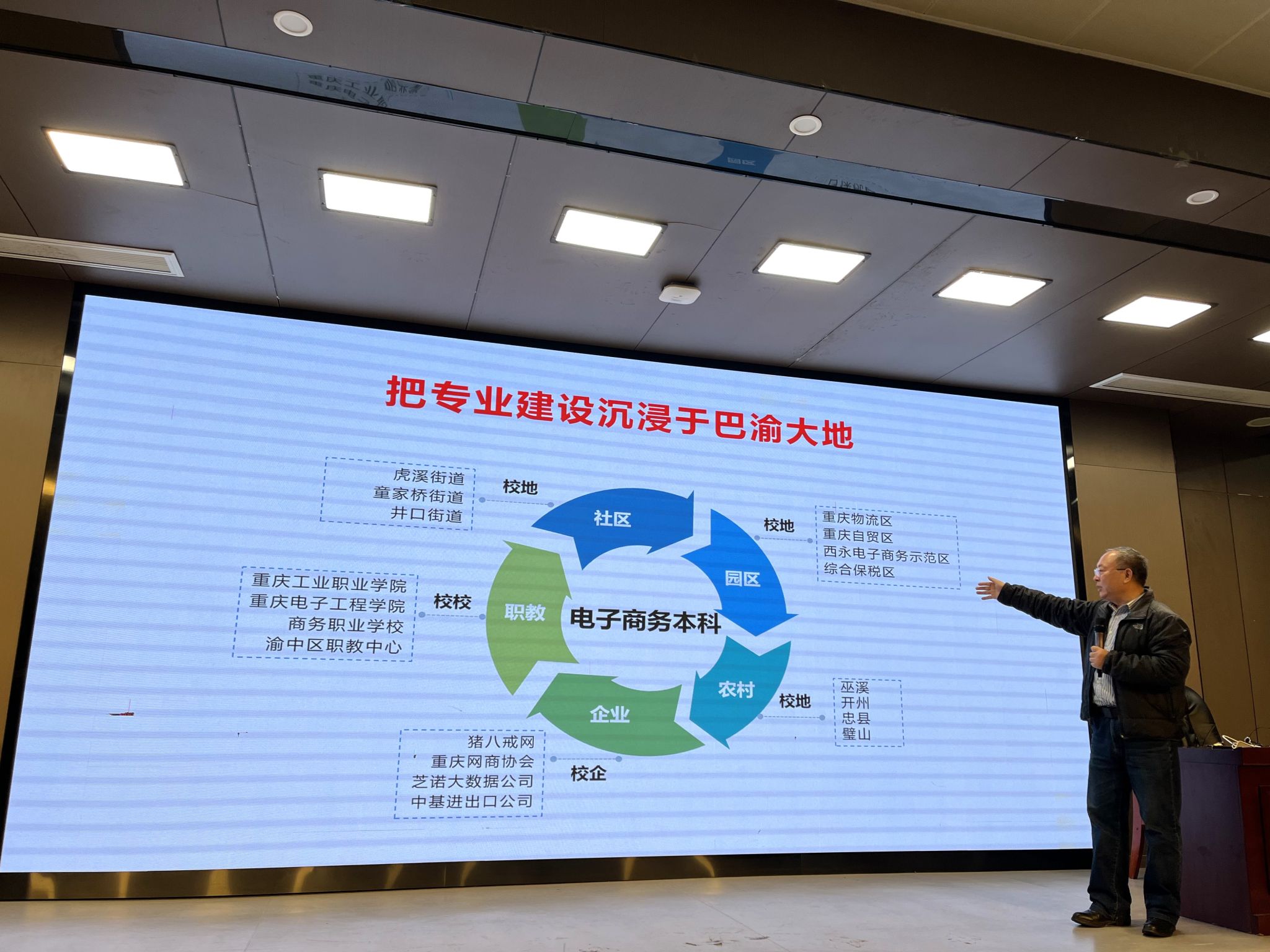 随后,重庆师范大学计算机科学教授、硕士生导师、重庆市高等教育学会电子商务专业委员会理事长李明教授为大家开展了三创赛的主题讲座。李明教授首先强调了院校赛事负责人在整个三创赛组织工作中的关键作用。他指出,负责人务必以高度的严谨性严格把控院校参赛资格,将每一项细则与注意事项都研究透彻,并且精准地传达给参赛师生。在宣传赛事上,负责人要采取积极主动且多样化的策略,充分利用各类校园资源与新媒体平台,全方位、多层次地推广赛事,最大程度地激发师生的参与热情,全力以赴为学校争取更多的晋级机会。同时,他特别提醒,在赛事组织过程中,细节决定成败,必须时刻保持警惕,避免出现任何可预防的失误。