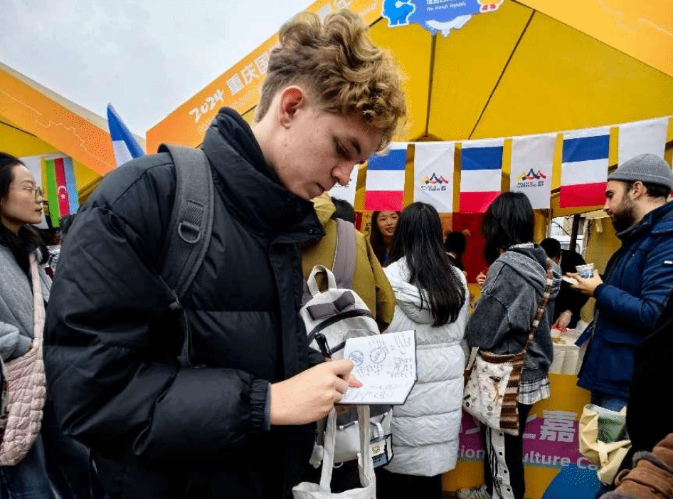 12月6日,在重庆市委宣传部和重庆市教育委员会的大力推动下,西南政法大学举办的“2024重庆国际文化嘉年华”在渝北校区盛大开启。重庆移通学院受邀参加此次活动,国际商学院周琳浠老师带领四位留学生Luisa Aurelia, Sarah Maria, Sebastian, Emil Adriano早早来到活动场地,一同见证了以“相融共进、交流互鉴、创新发展”为主题的文化盛宴。