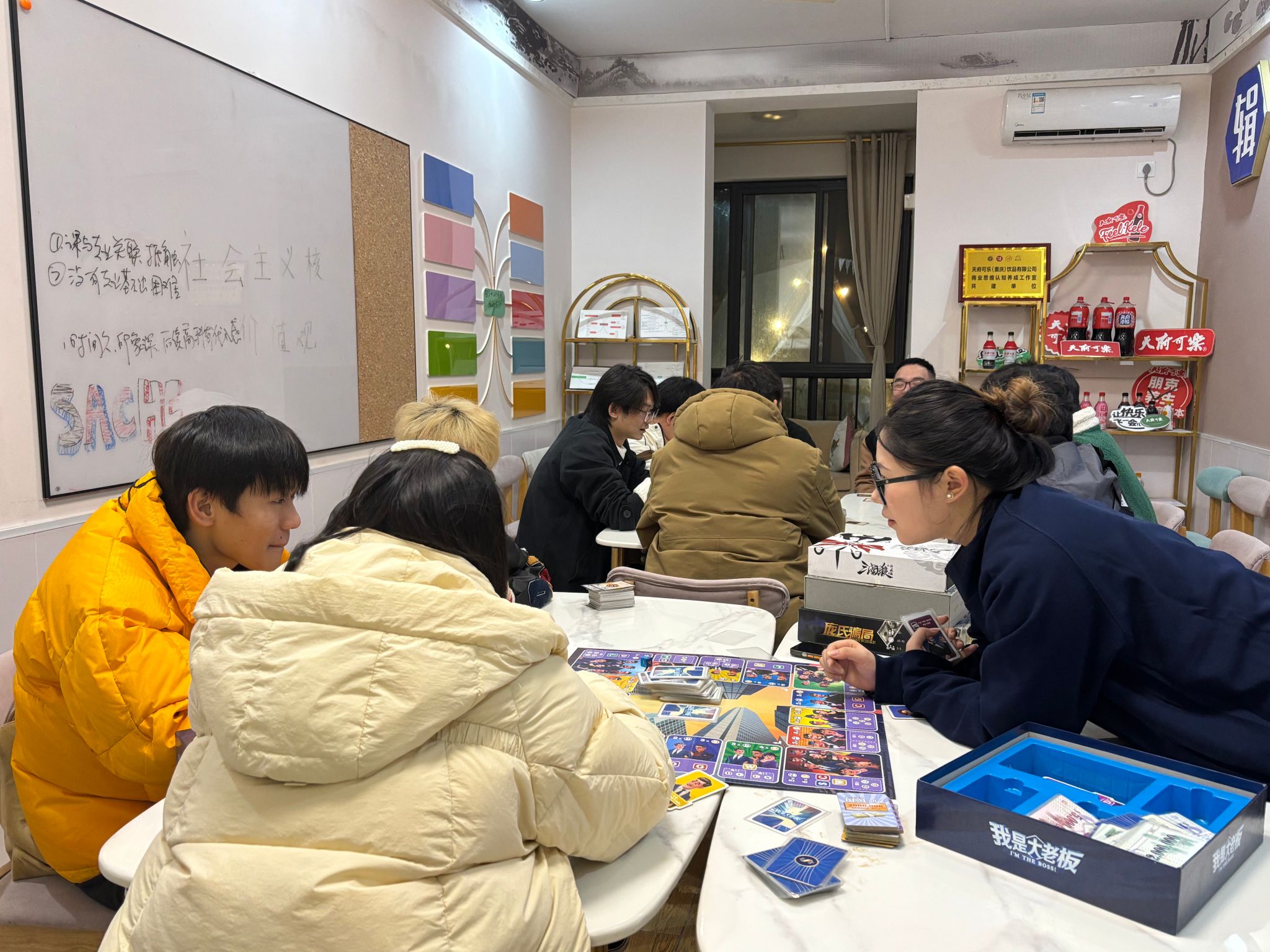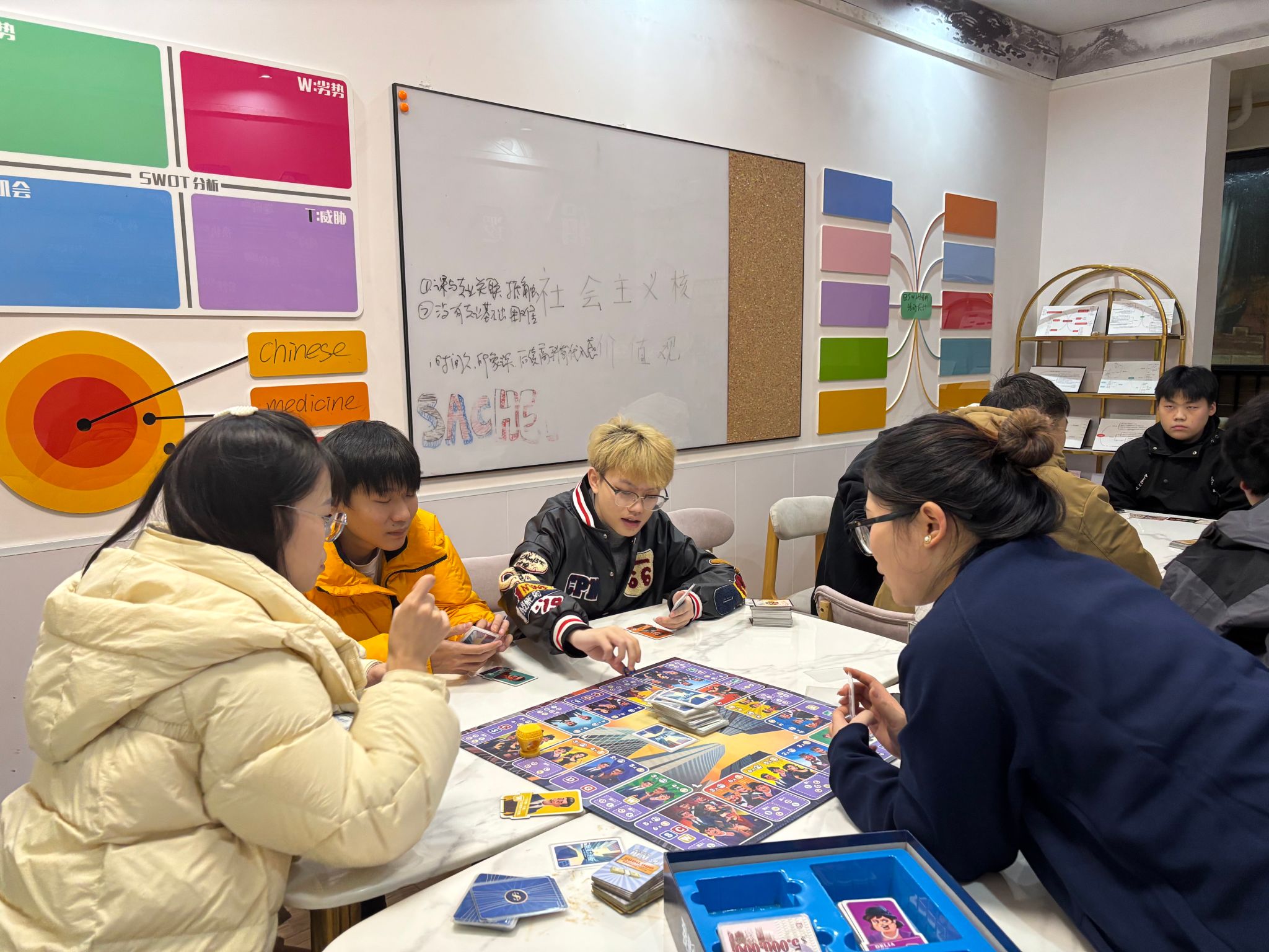 为贯彻落实学校“四位一体”的教学理念,结合“专业在学院,生活在书院”的双院制模式,助力课程教学模式的多样化,使教师乐教,学生乐学。合川新商科教学部联合鱼城书院打造“大富翁的财务自由之路”项目工坊,定期开展“庞氏骗局”、“我是大老板”等桌游活动,融入不同角色,让玩者在谈判博弈之下,运用《投融资管理》、《数字经济时代财务管理与应用》等课程所学知识、技能等全面参与,角逐出利益的优势方和劣势方,其次,同辈们之间的思维碰撞也有利于学生更好地建立学科与学科之间的逻辑框架。