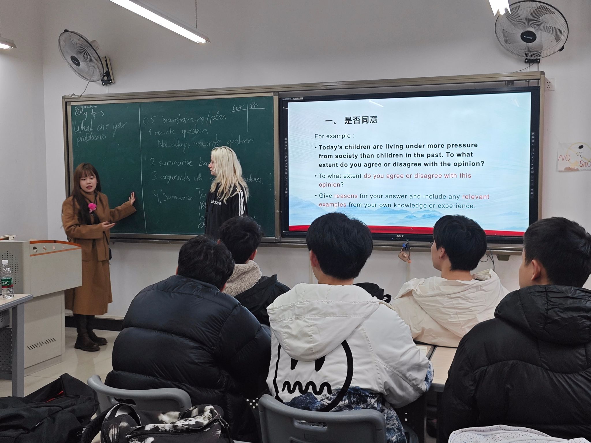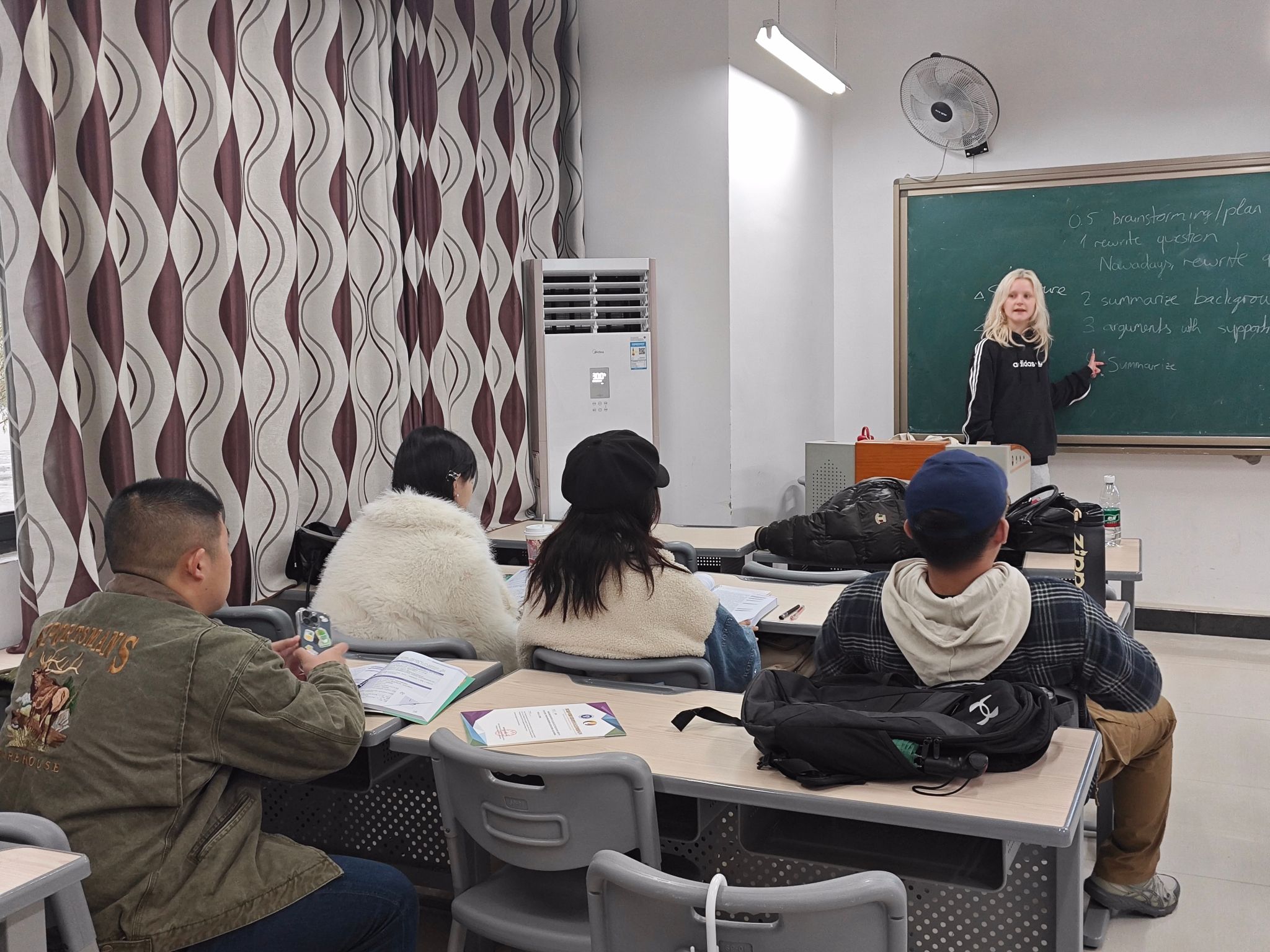 为了更有效地提升中国学生的英语水平和综合素质,在国际处的指导下国际商学院安排了四位留学生按听、说、读、写四个板块,分别深入到国际商学院、国际教育学院的所有语言课堂中,作为助教,共同探索英语世界的奥秘。本期,我们特别关注了留学生Sarah的写作助教课堂,她与国际班的学生们进行深入的学术交流和思想碰撞,希望通过跨文化互动,为同学们搭建一个提升英语、拓宽视野的平台。