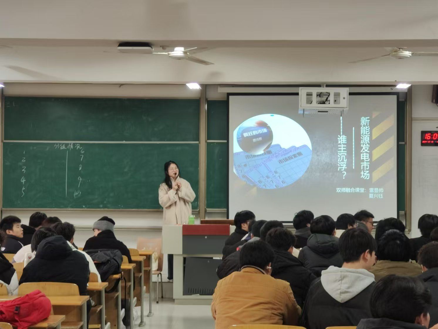 在2024年12月16日周一的第7-8节课,一场别开生面的线下双师课堂于第一教学楼1303教室精彩上演。智能工程学院的雷显帅老师携其精湛的“新能源发电技术”专长,踏入新商科教学部夏兴钰老师的课堂领域,成功将新能源发电的前沿技术与企业战略管理的智慧谋略进行了精妙融合,为学生们开启了一扇通往知识与实践融合的新大门。