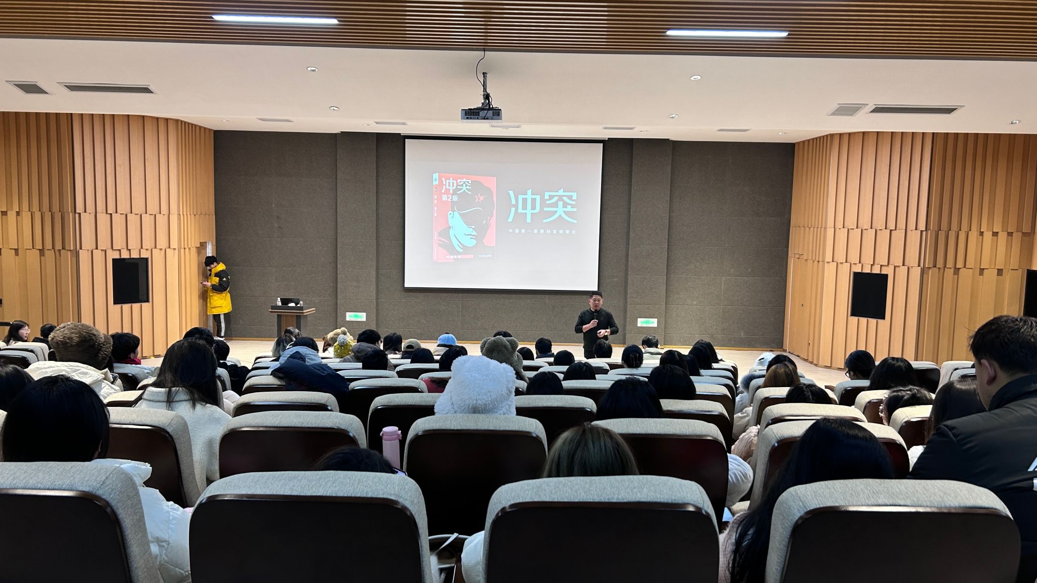 12月21日上午,冲突营销学院第二期实训班在重庆移通学院六度空间无线多功能厅举行了本学期最后一次集体案例课。本次《冲突营销》大型案例课特邀叶茂中冲突商学院总经理兼重庆移通学院冲突营销学院院长丁士安先生担任主讲,主题为“解决传播冲突”。实训班全体学生及冲突营销学院董道进、孙可可、唐杰老师全程参加了此次教学活动。