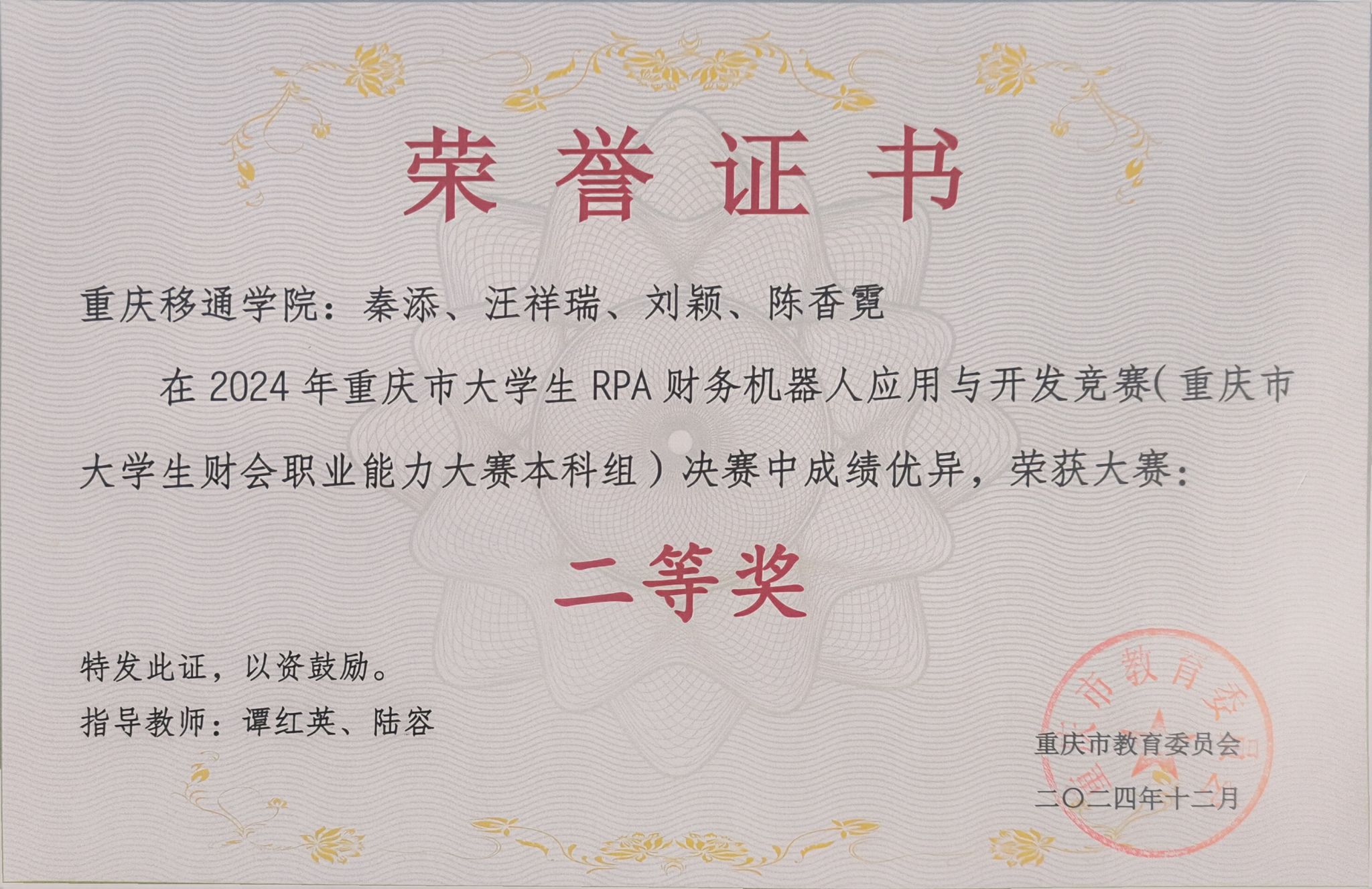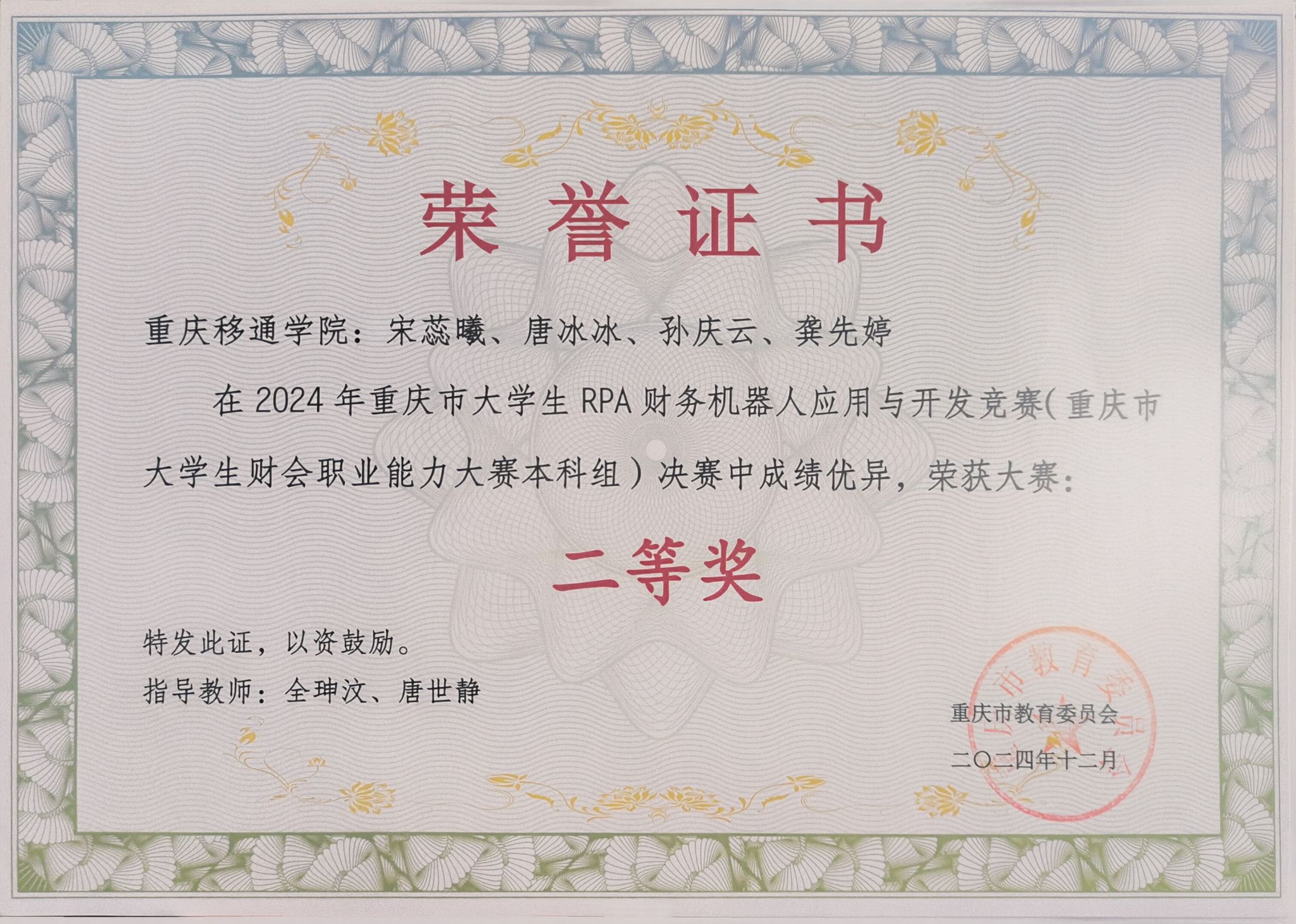 本次大赛由淬炼商学院财务管理教研室运营,自9月13日起,精心组织,为参赛选手提供了全方位的指导和支持。参赛学生们也表现出了极高的热情和认真的态度,积极备战,不断提升自己的专业水平和实战能力。经过为期近半个月的激烈角逐,通过线上测试的方式,从总计近77支队伍中挑选出了6支代表队伍共24名学生参加重庆市比赛。在11月3日举行的重庆市比赛中,我校学生沉着冷静,发挥出色,充分展示了扎实的专业功底和良好的团队协作精神,有2支队伍荣获重庆市大学生财会职业能力大赛二等奖,最为出色的是,其中一支队伍成功晋级全国总决赛。