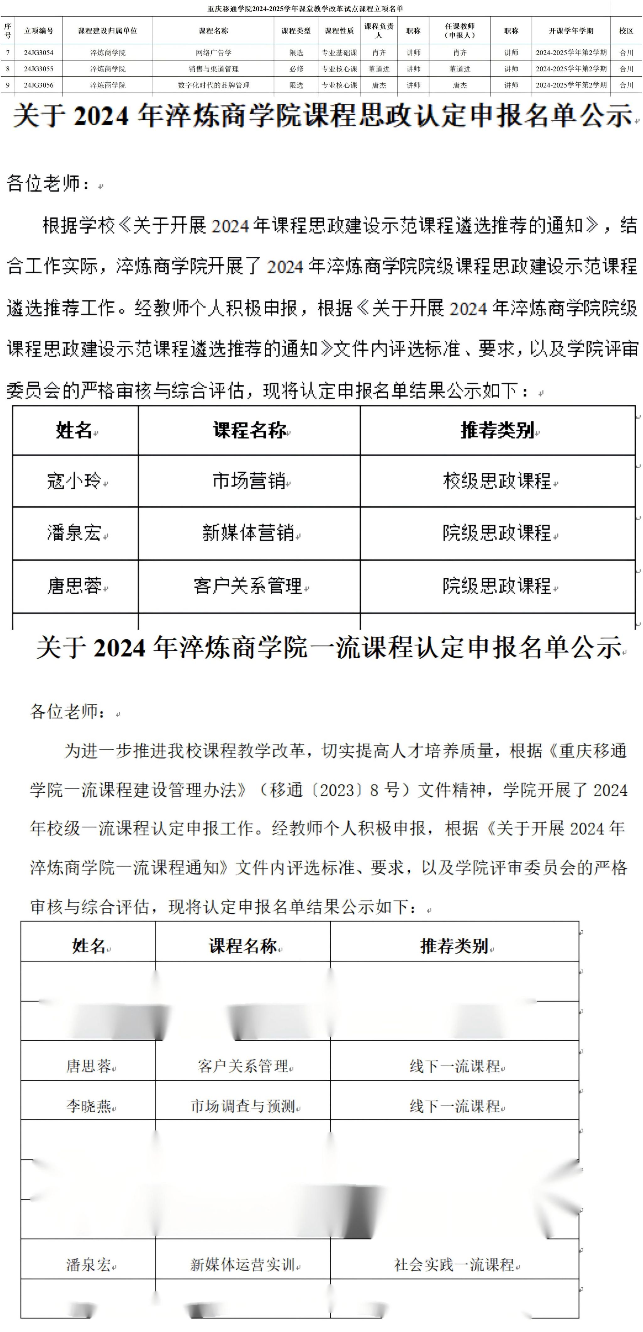 新媒体营销教学成果丰硕。教学团队撰写4篇实战项目教学案例被收录,其中1篇被清华大学经济管理学院收录;潘泉宏老师出版《新媒体营销》教材。