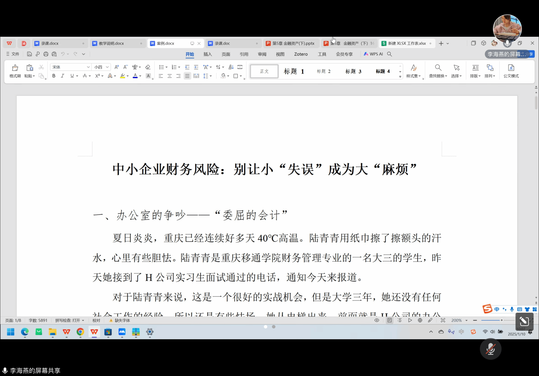 来自重庆移通学院财务管理教研室的骨干老师李海燕老师为大家分享如何撰写专业教学案例。李老师的案例是在对校企合作企业的充分了解之后,根据沟通过程中了解到的企业在财务工作中的问题,反复打磨,形成了一篇故事生动、教学点突出的优秀案例。李老师的案例从企业日常业务难点入手,题目《中小企业财务风险:别让小“失误”成为大“麻烦”》引人入胜,选题贴近现实,有故事性。故事开篇以移通学院实习生的视角描述困境场景,迅速抓住读者的心。其次,融入财务知识讲解,在故事推进中,展现了会计工作难开展、报销流程不规范、利润额与预期不符的真实工作场景,让专业知识自然呈现。最后通过案例教学说明,让使用者可以更好的将这一个案例融入教学之中,包括在课程中的定位、学习目标、时间分配等。李老师的分享提到了很多案例撰写的要点,比如要根据案例库的要求来展开案例,李老师的案例就是根据相应案例库的要求,以故事化的形式开展的。在撰写的过程中,也要充分与企业沟通,做好相应的企业信息保护。各位老师在这个过程中受益匪浅。