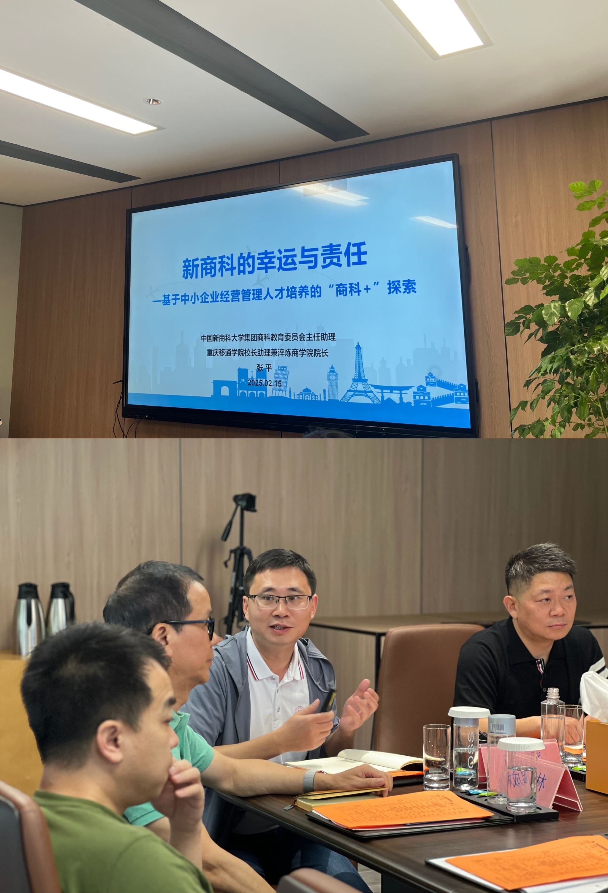 张平校助以《新商科的幸运与责任——基于中小企业经营管理人才培养的商科+探索》为题发言,从中国中小企业经营管理人才的需求、传统商科教育的反思以及新商科教育的创新探索三个方面进行了详细阐述,重新回顾了双方合作的思路和冲突营销学院的定位、使命和发展方向。